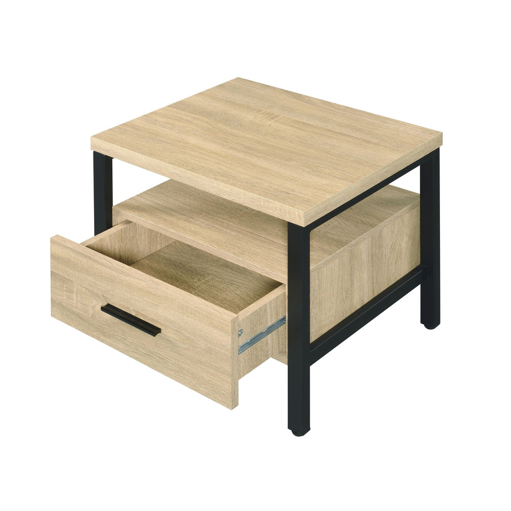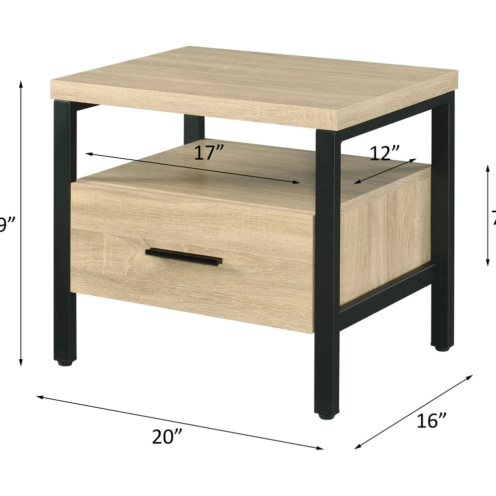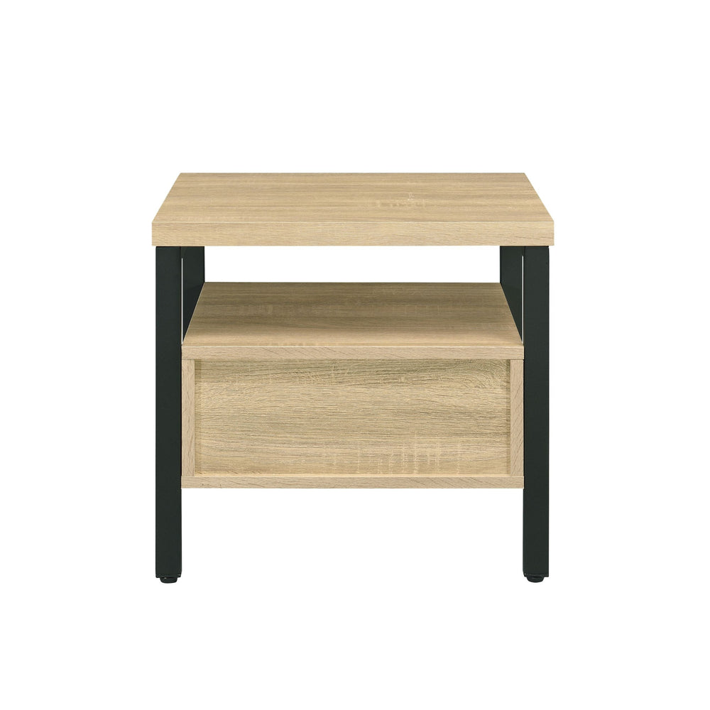 This modern oak finish nightstand is designed for bedrooms or living rooms, offering functional and stylish storage with a compact footprint.