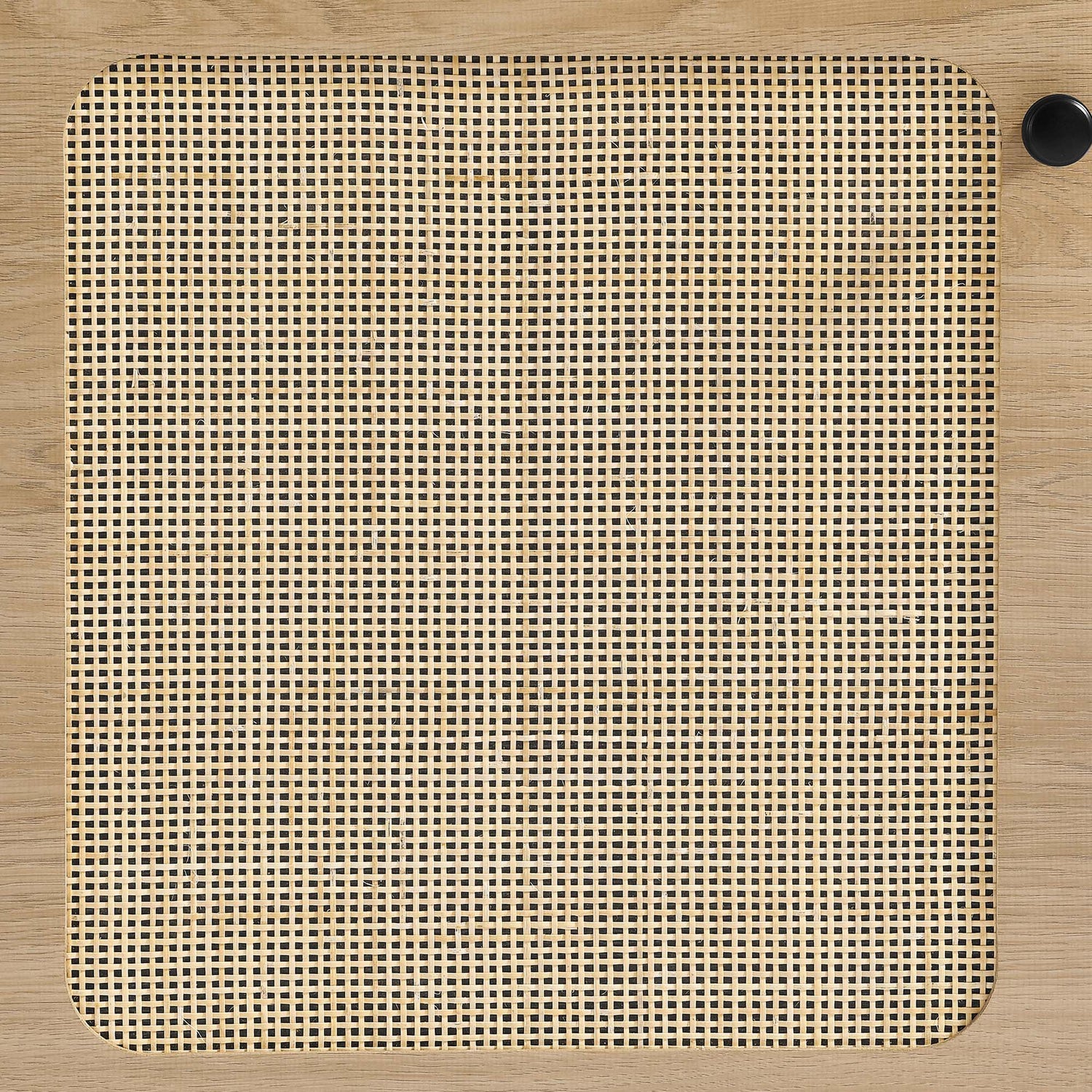 Refresh your workspace with the textured detail of the Chaucer Office Desk. Featuring beautiful rattan weaving on the doors, this computer desk updates a home office, college dorm, lounge area, or other workspace. Two full extension drawers, a pull-out keyboard tray, and spacious height-adjustabe shelves behind hinged doors offer ample storage for all your office essentials. Resting on sleek legs with adjustable feet for added stability, this office desk is durably crafted with particleboard and wood grain laminate to bring natural organic aesthetics to your bedroom decor. Assembly required.