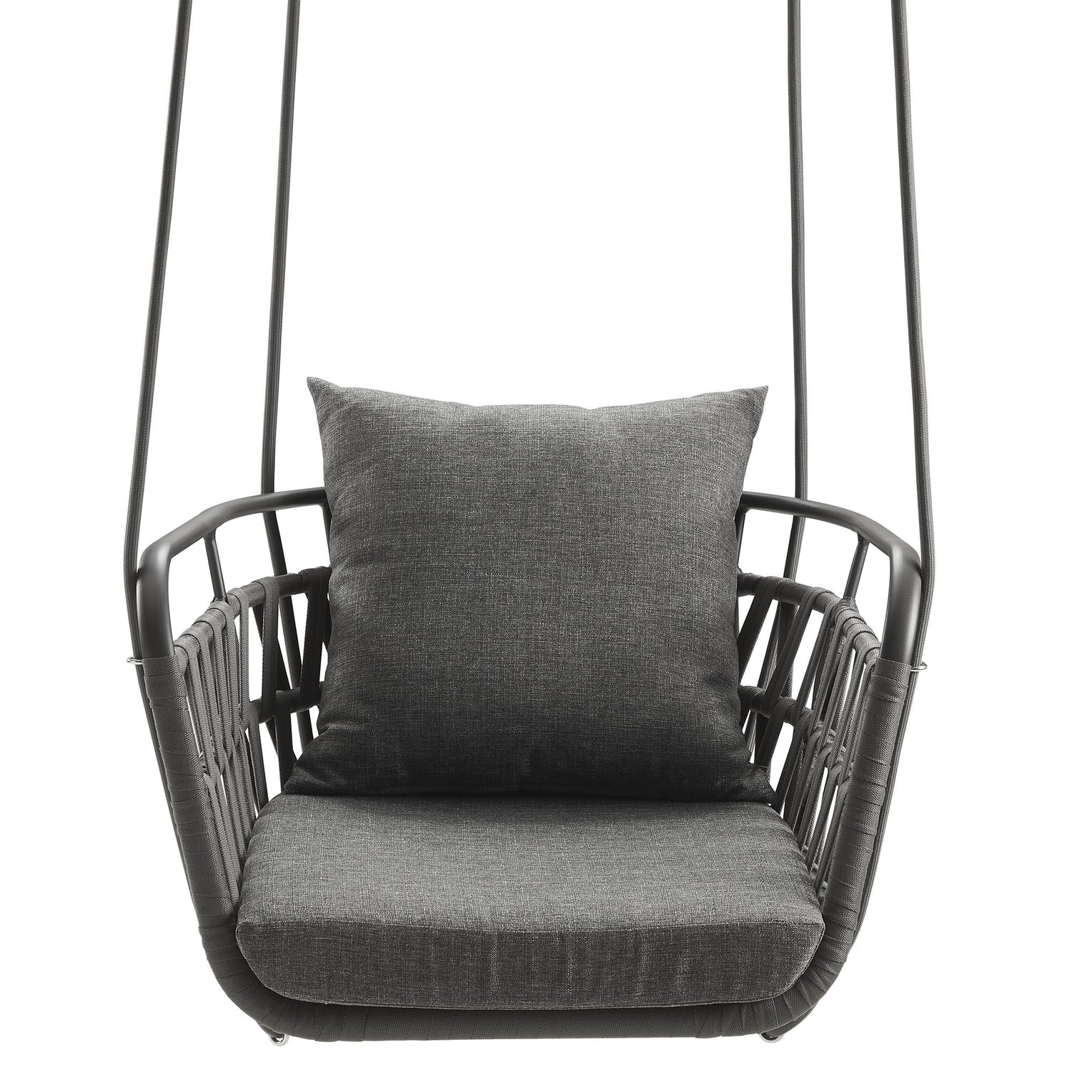 Settle into relaxation with the Kaliah Outdoor Patio Swing Chair. This beautifully crafted single porch swing features a powder-coated aluminum frame intricately woven with thick polyester straps, creating a sophisticated and artisanal look. The plush, foam-filled cushion and pillow of this porch swing chair are covered in water-resistant fabric and are removable for easy cleaning. Whether you�re reading a book, sipping coffee, or just admiring the surroundings, the Kaliah Patio Hanging Chair is designed for comfort. With the included two 13-foot ropes and a stainless steel buckle equipped with a locking mechanism, this outdoor swing chair without stand provides a secure and stable hanging solution perfect for patios, backyards, or porches. Assembly Required. Weight Capacity: 331 lbs.