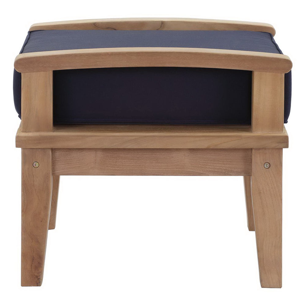 Harbor your greatest expectations with the luxurious Marina Teak Wood Outdoor Patio Ottoman. Marina Patio Furniture set has a seating arrangement perfect for every member of your crew as you breathe the fresh, crisp air of a day spent with friends and family. Known for its natural ability to withstand extreme weather conditions, teak is the wood selection of choice for long-lasting outdoor patio furniture. Now you can enjoy Marina Teak Wood Outdoor Patio Ottoman with its durable construction and all-weather cushions, alongside a modern design that persistently looks new and welcoming in your patio furniture environs. Assembly required.