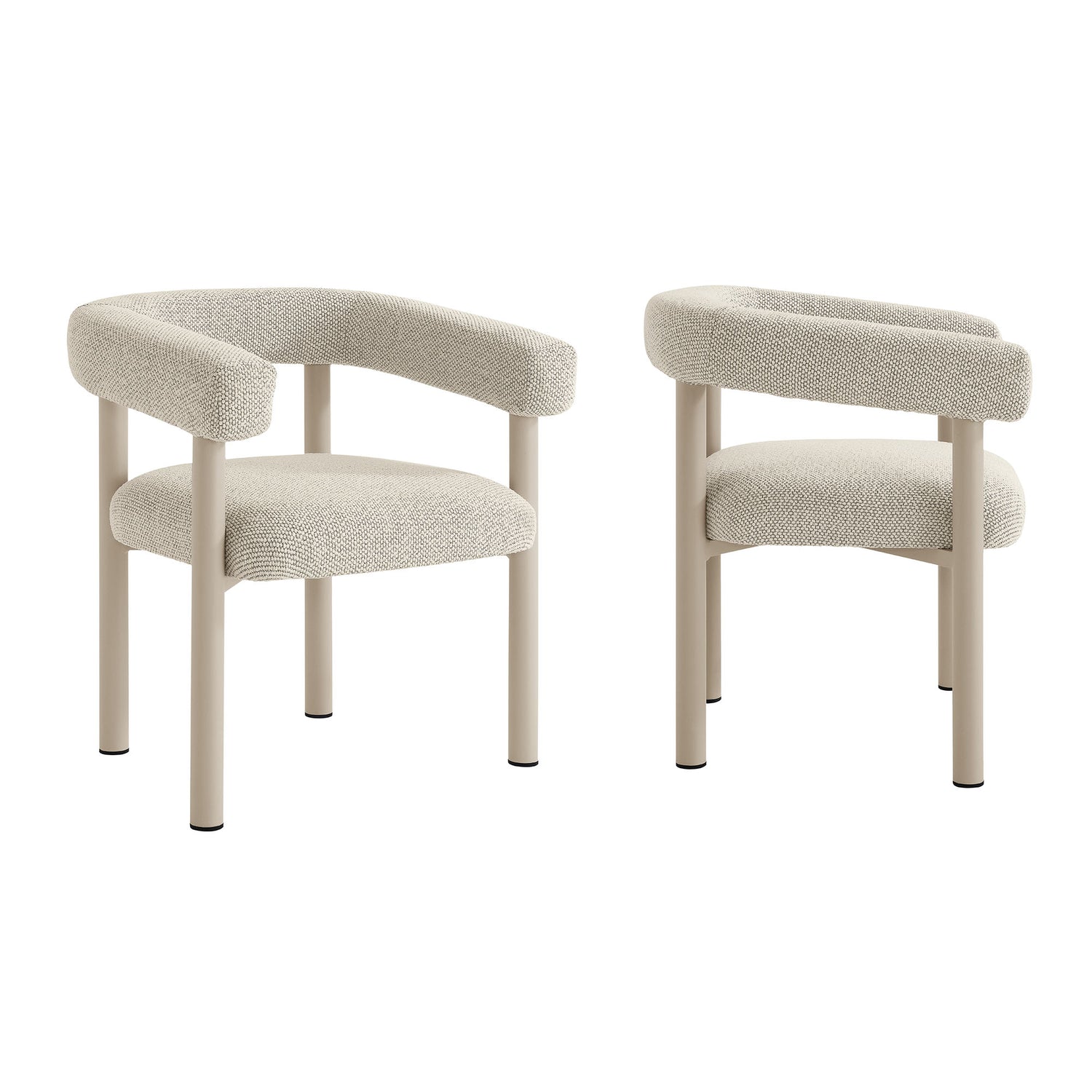 Elevate your outdoor space with the Nautica Modern Contemporary Patio Dining Armchairs Set of 2. Crafted from powder-coated metal, these aluminum outdoor dining chairs combine durability with sleek design. The curved back and sleek tubular frame offer a perfect blend of comfort and style, making them standout patio chairs in any setting. Designed for all weather conditions, these outdoor dining chairs feature quick-drying dense foam padding and water-resistant fabric upholstery. Non-marking plastic foot glides protect your flooring, making these aluminum outdoor chairs ideal for any surface. Whether you need seating for your outdoor dining table, balcony, or stylish patio setup, the Nautica Fabric Upholstered Metal Armchairs Set of 2 is your go-to choice for exceptional outdoor seating. Enhance your patio, porch, or garden with this versatile aluminum patio furniture collection, and enjoy comfort and style all year round. No assembly required. Weight Capacity of each aluminum patio chair : 300 lbs.