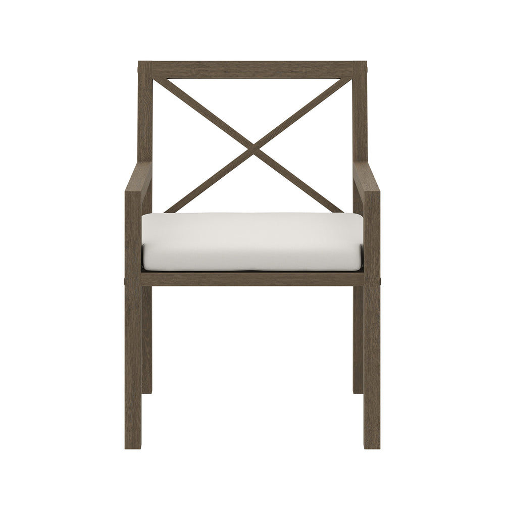 Soak in nature’s beauty while dining al fresco with the Northlake Outdoor Teak Dining Chair, a stylish and durable addition to any patio or deck. Expertly crafted from sturdy teak wood, this outdoor dining armchair features a distinctive cross-back design that enhances both support and aesthetic appeal. The slatted seat base promotes airflow and durability, while the plush, all-weather cushion offers water-resistant, fade-resistant, and quick-drying performance for lasting comfort. Whether gathered around a dining table or used as a standalone accent chair, the Northlake Outdoor Patio Dining Chair blends timeless craftsmanship with modern outdoor luxury. Includes non-marking floor glides for added protection. Assembly required. Weight Capacity: 500 lbs.