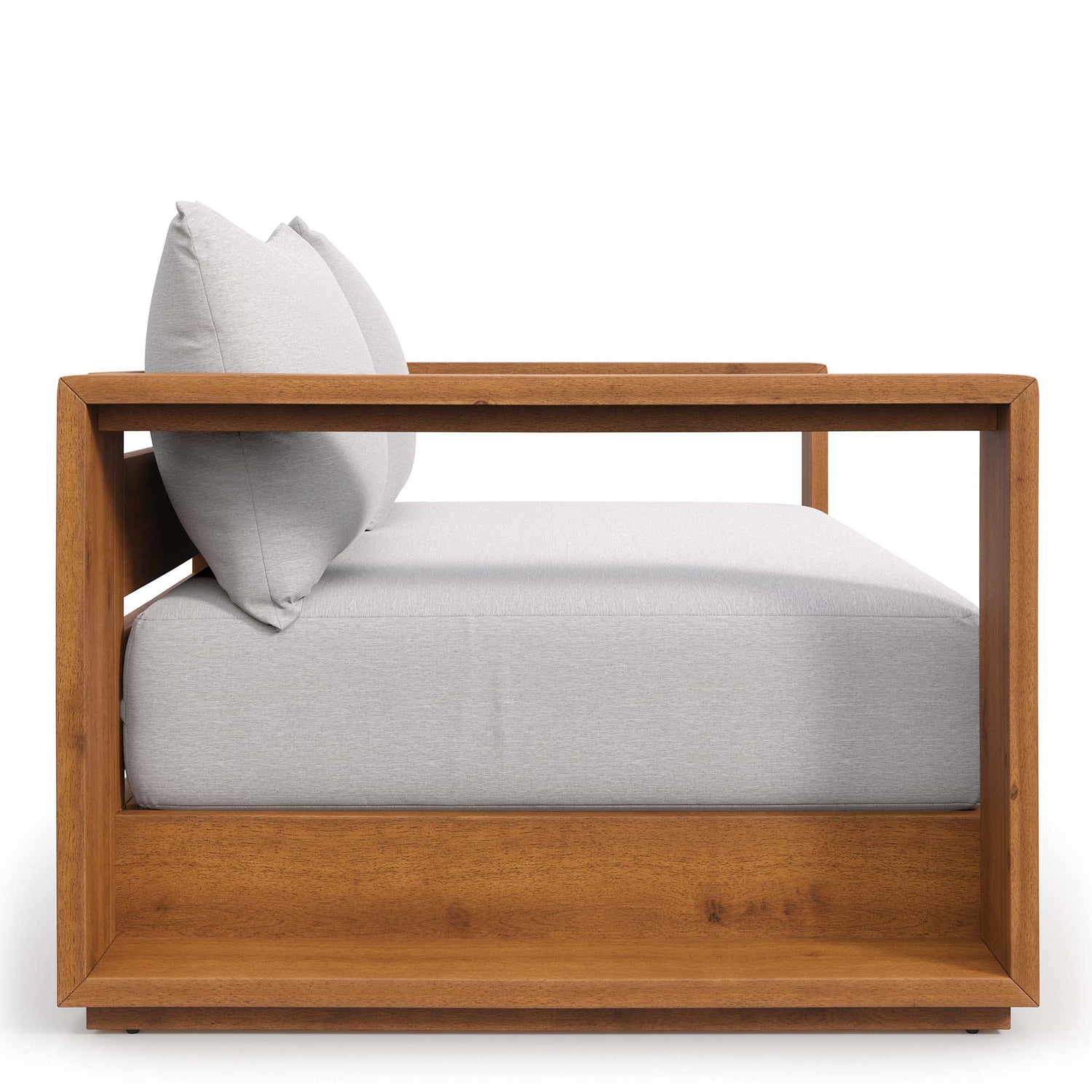Enliven your alfresco spaces with the Tahoe Acacia Wood Outdoor Patio Loveseat. This modern outdoor loveseat is constructed with FSC-certified acacia wood, blending seamlessly into your outdoor lounge spaces as a stylish patio piece. Its dense foam padding ensures sustained comfort, making it ideal for poolside lounging or as a cozy porch seat. Featuring a UV and water-resistant fabric-covered seat and backrests, the removable outdoor cushions make this durable acacia wood loveseat low maintenance and high performing. An accommodating all-weather couch, Tahoe is perfect for outdoor relaxing and entertaining. This two seater sofa features non-marking foot glides to protect your deck or patio floor and comes with easy-to-follow assembly instructions. Weight Capacity: 800 lbs.