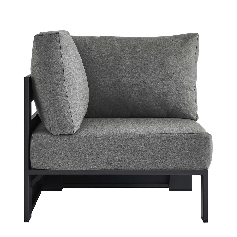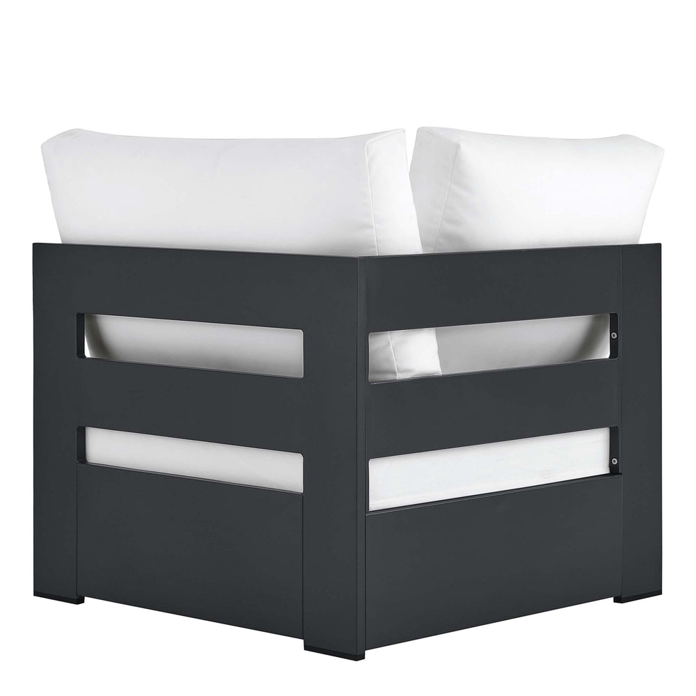 Enliven your alfresco spaces with the Tahoe Aluminum Outdoor Patio Corner Chair. This modern outdoor patio corner sectional is constructed with well-crafted, durable powder-coated aluminum, dispensing contemporary elegance in your outdoor lounge spaces. Its dense foam padding ensures sustained comfort, making it ideal for poolside lounging or as a cozy small corner couch, complete with a UV and water-resistant fabric-covered seat and backrests. The cushion covers are removable for easy machine washing. Part of a modular outdoor furniture collection, this weather-proof corner seat offers adaptability and style while entertaining or relaxing, making it ideal for pairing with its matching sectional piece or versatile positioning with other outdoor furniture. The entire Tahoe aluminum patio furniture set features non-marking foot glides to protect your deck or patio floor and comes with easy-to-follow assembly instructions. Weight Capacity: 331 lbs.