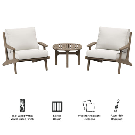 Northlake 3-Piece Outdoor Patio Teak Wood Furniture Set