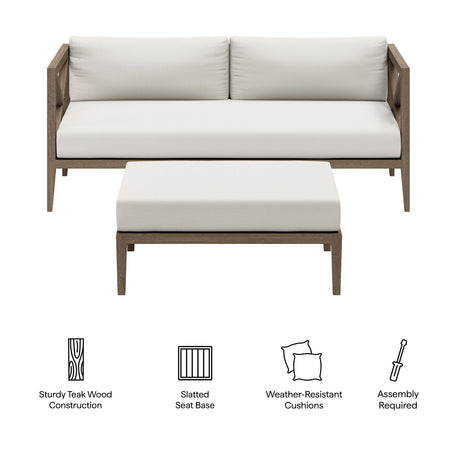 Northlake Outdoor Patio Teak Wood Loveseat and Ottoman Set by Modway