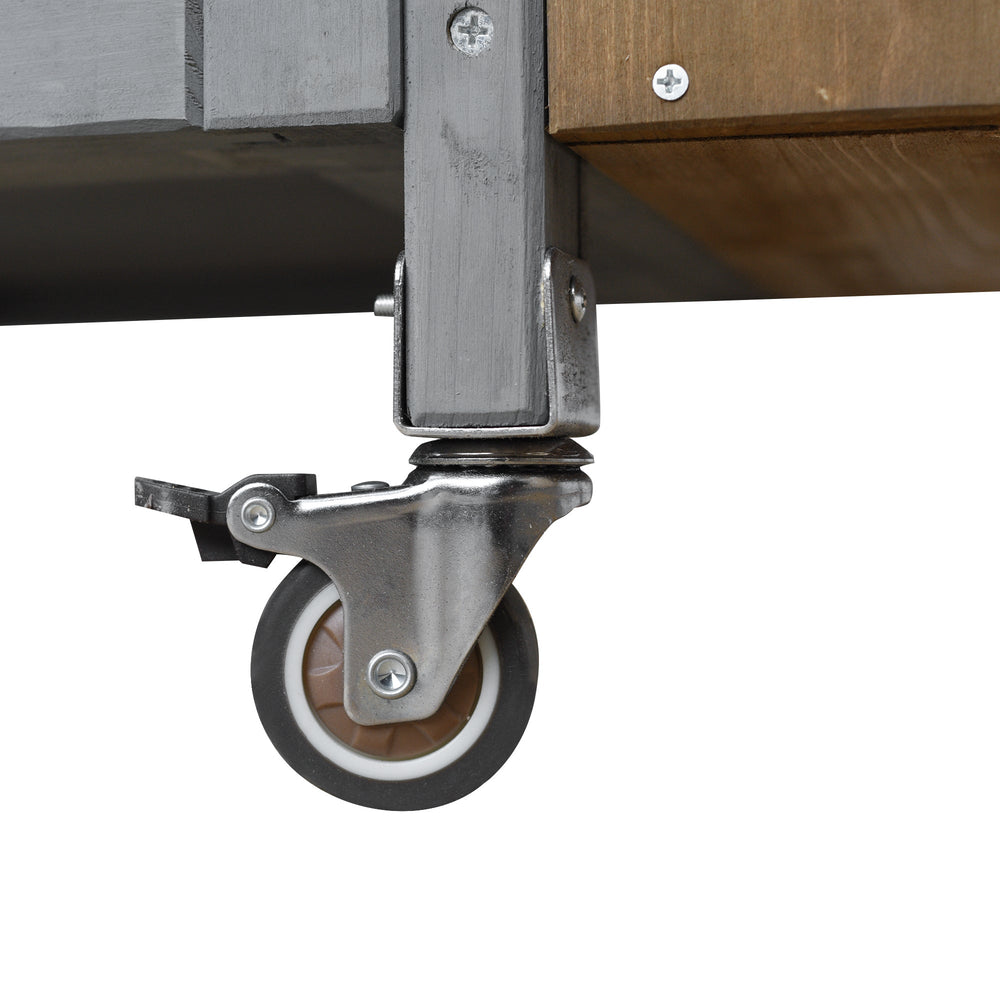 This foldable outdoor kitchen island is a versatile addition to any patio or garden, combining functional workspace with mobile convenience. Its design accommodates outdoor cooking and serving needs with style and practicality.