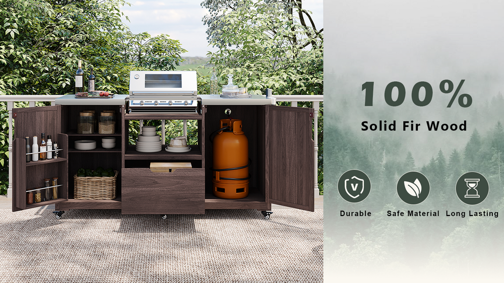 K&K 66.5' Outdoor Kitchen Island for Big Green Egg Grills