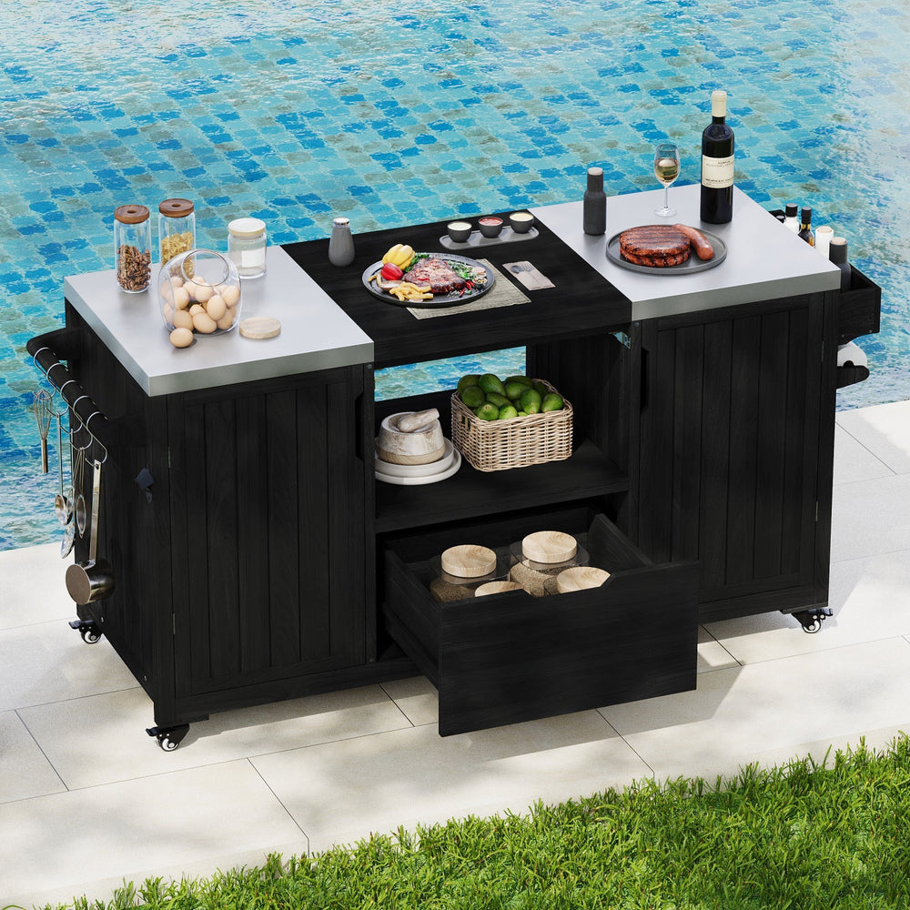 - Constructed with a modular design including a stainless steel top and drawer for storage