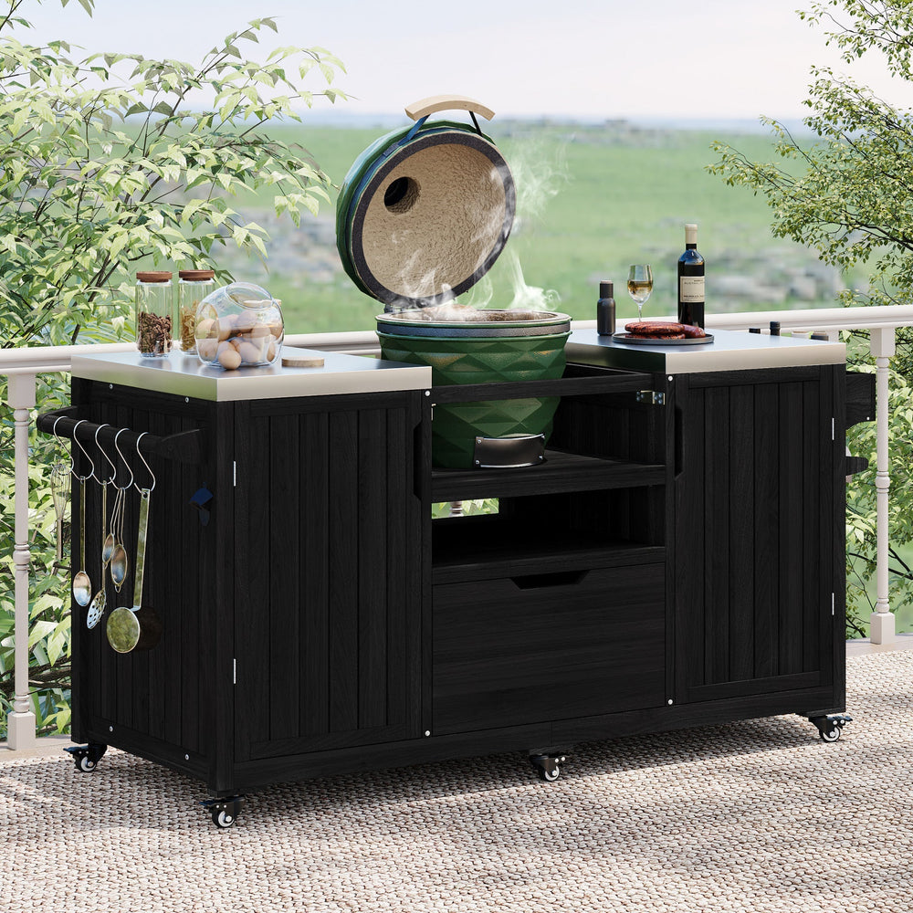 This outdoor kitchen island is a versatile grill cart designed for garden and outdoor kitchens. It provides a stylish and functional workspace compatible with large Big Green Egg grills and other similar tabletop grills.