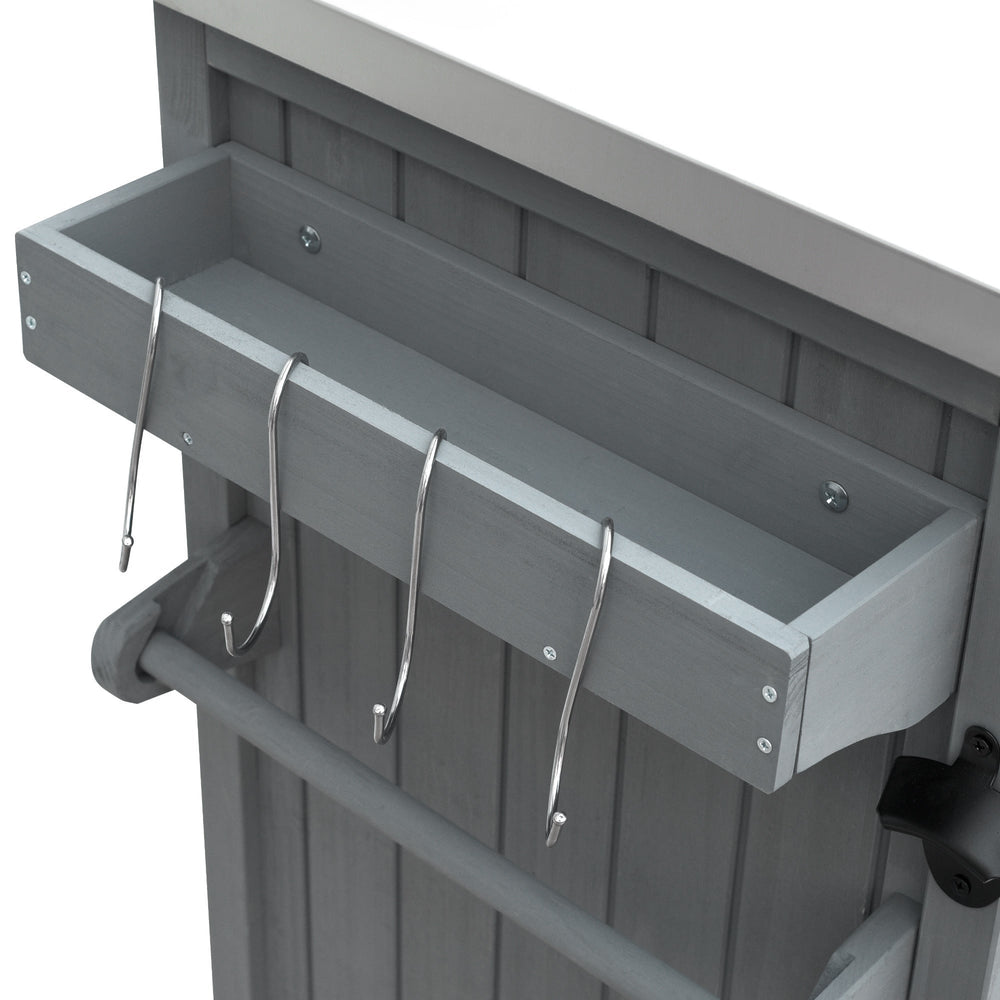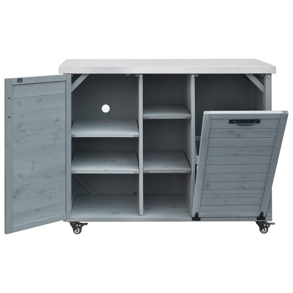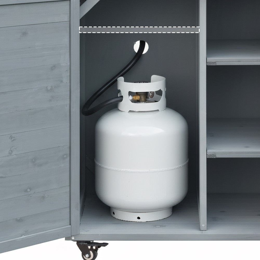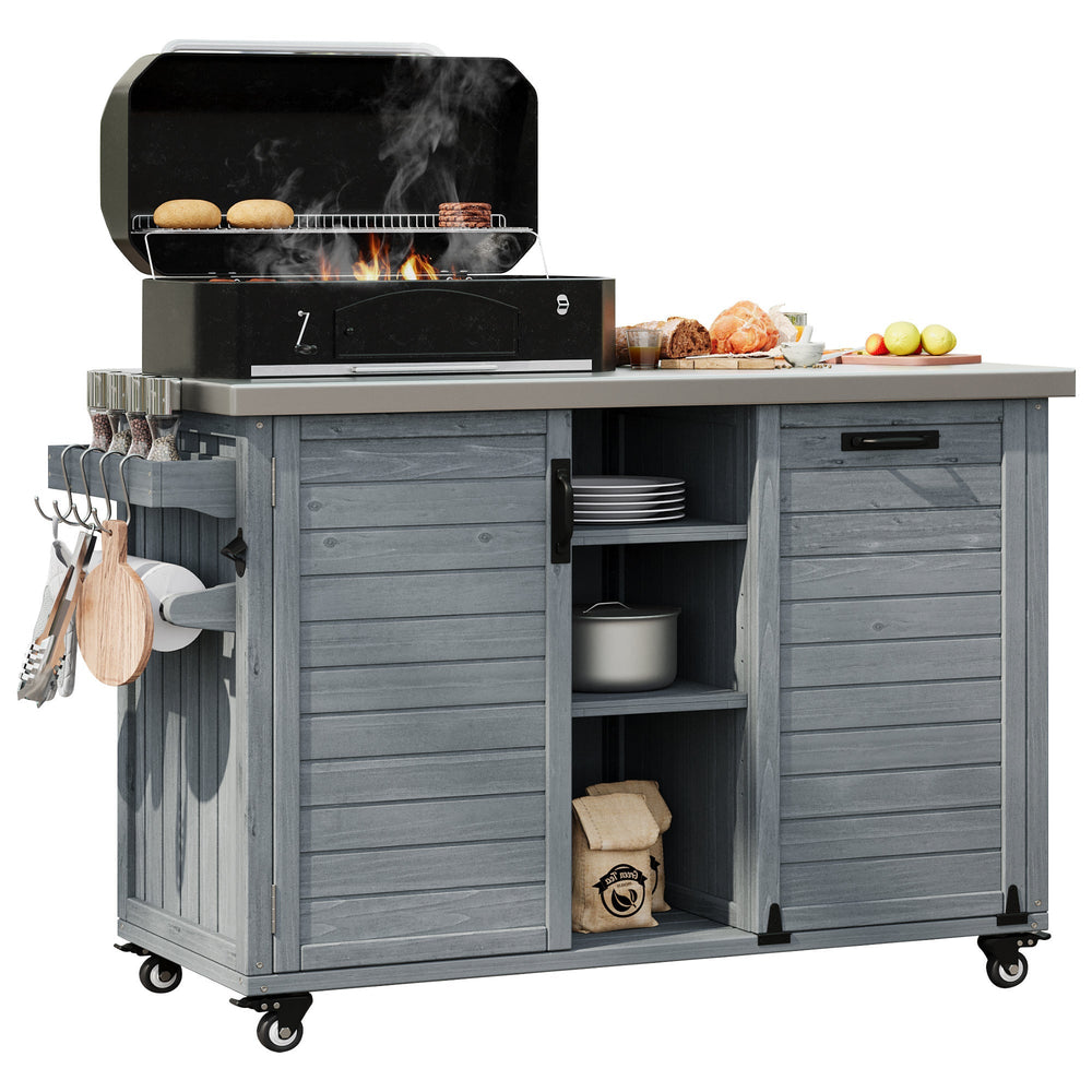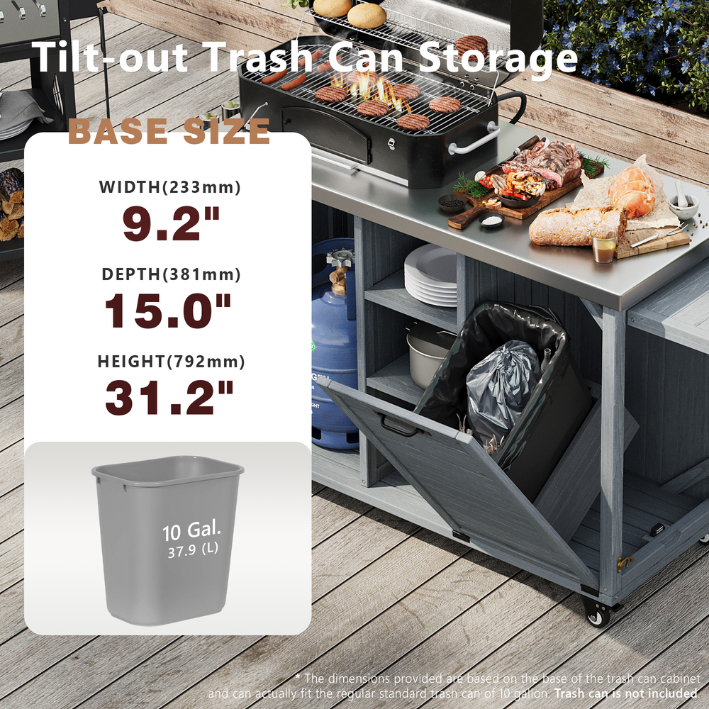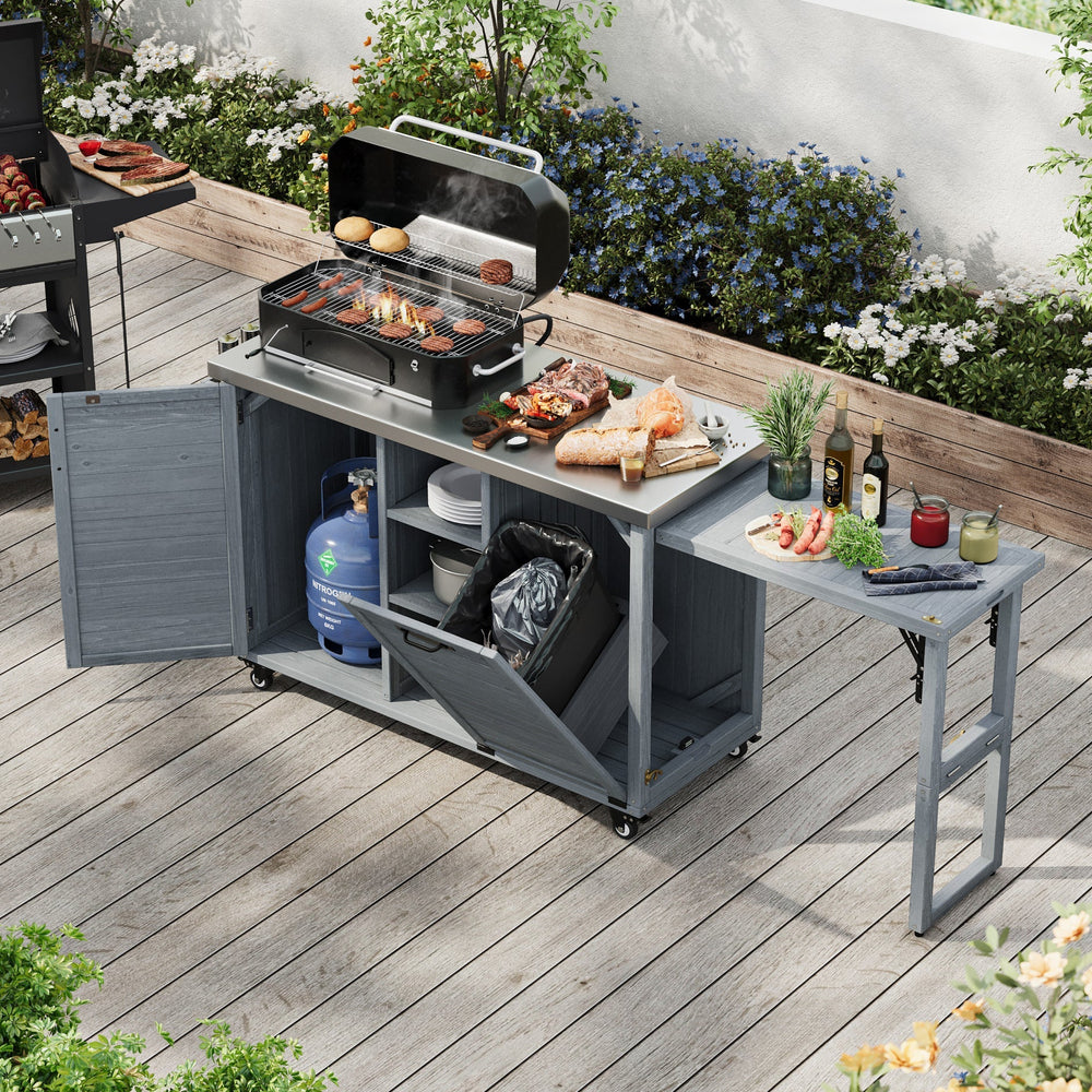 The K&K Outdoor Kitchen Island provides a stylish and functional space for outdoor cooking and entertaining, perfect for patios or gardens. Its foldable grill table and spacious preparation surface blend classic and modern farmhouse aesthetics.