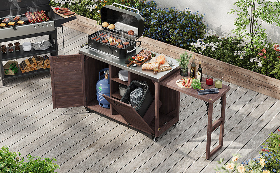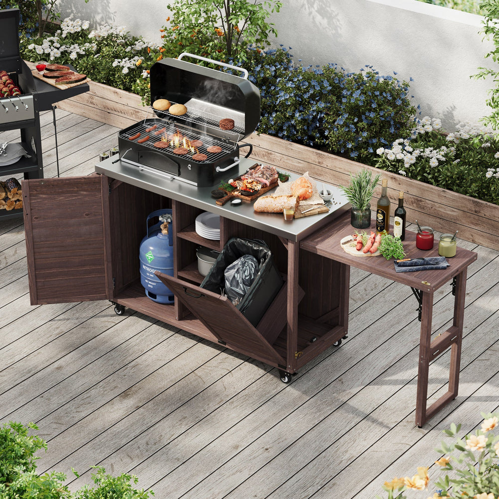 - Foldable grill station providing flexible cooking space