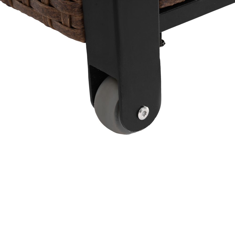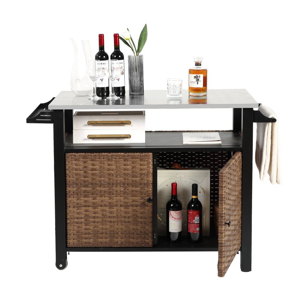 Outdoor Kitchen Wicker Island Rolling Cart & Storage Cabinet Brown