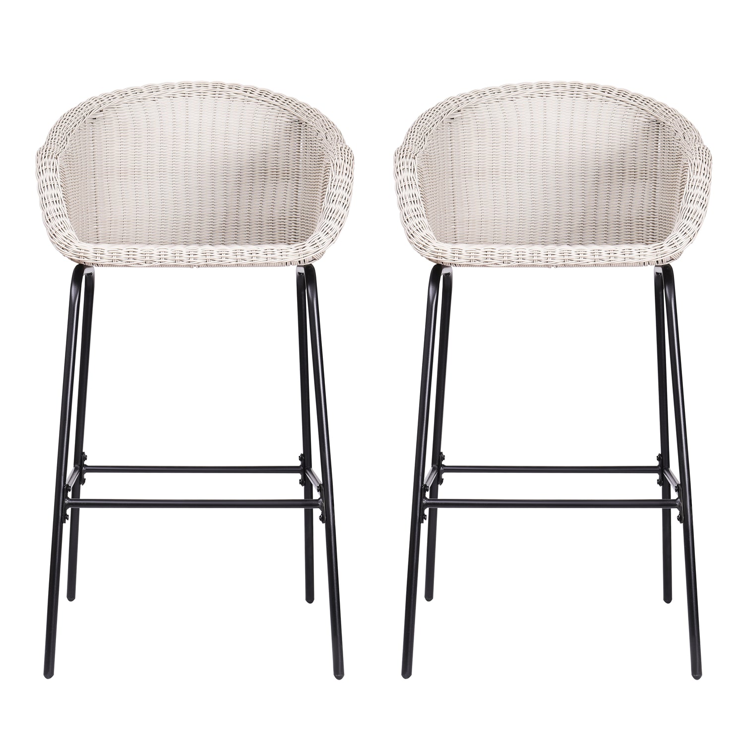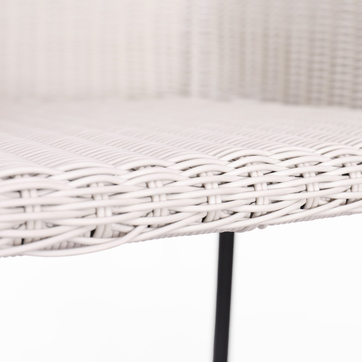 - Sleek Black Iron Frame: Exposed black iron legs provide a striking contrast to the light grey rattan, offering stability and a modern aesthetic.