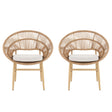 Cyril Outdoor Wicker Papasan Style Dining Chair with Teak Finished Legs, Light Brown Faux Rattan, Beige Cushion, Set of 2