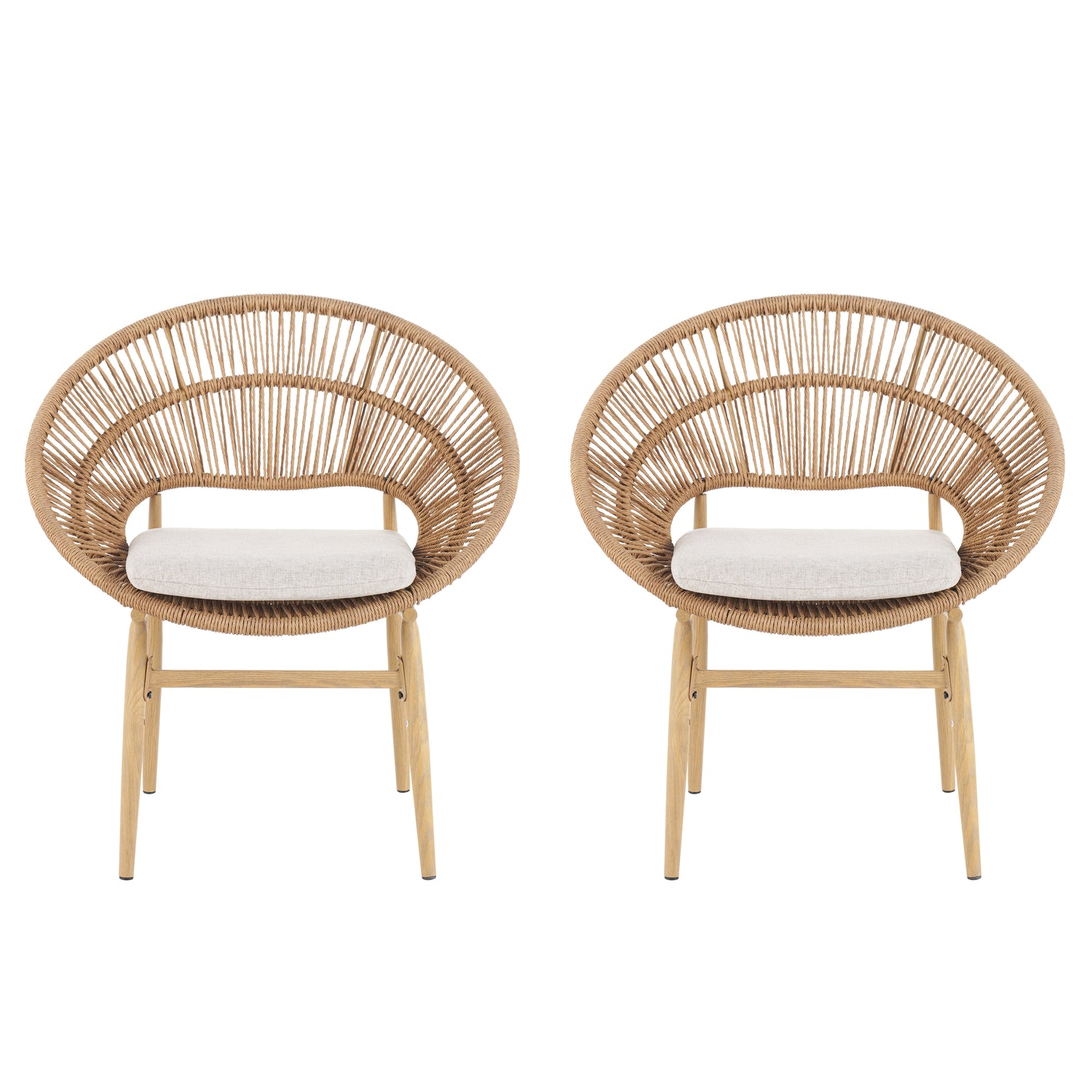 - TEXTURED ARTISANAL CHARM: Handwoven with light-brown PE (polyethylene) wicker in a twisted-rope pattern, the chair’s surfaces add tactile depth and subtle movement to outdoor spaces. The weather-resistant synthetic wicker retains its flexibility and color vibrancy even under harsh UV exposure.
