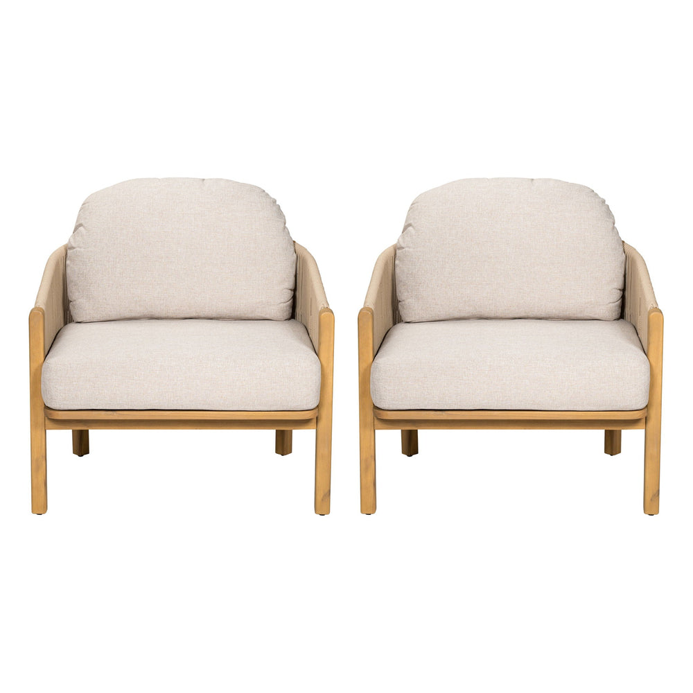 Grotta - Outdoor Wood Club Chair Set Rope With Cushion Frame - Teak / Beige