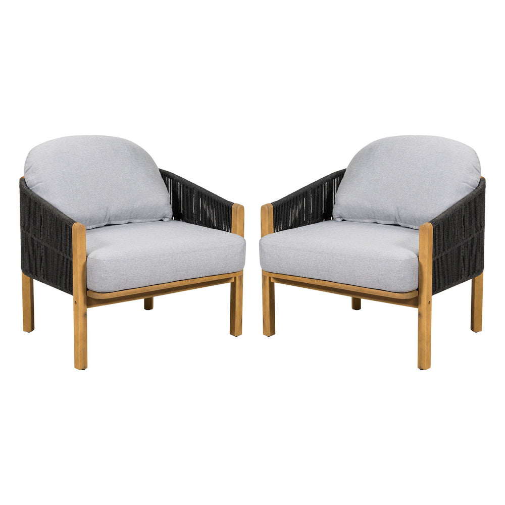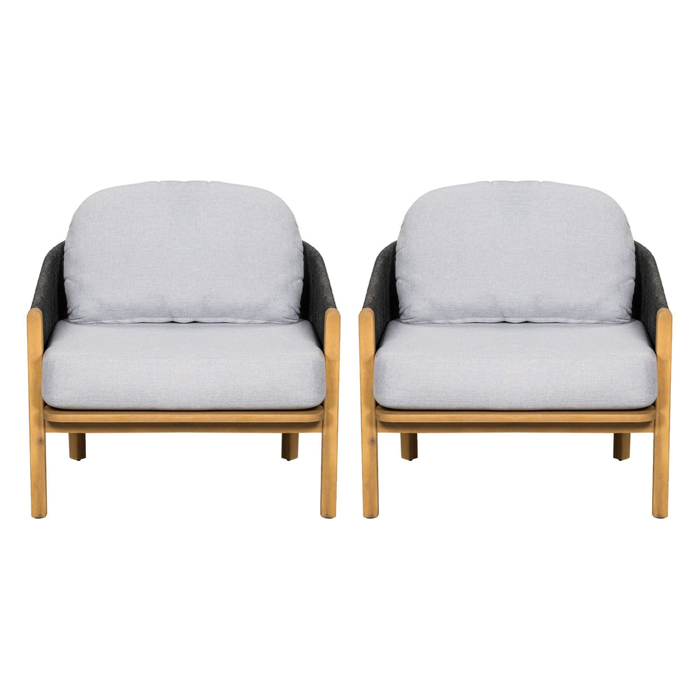 Grotta - Outdoor Wood Club Chair (Set of 2) With Rope And Cushion Frame - Gray / Teak