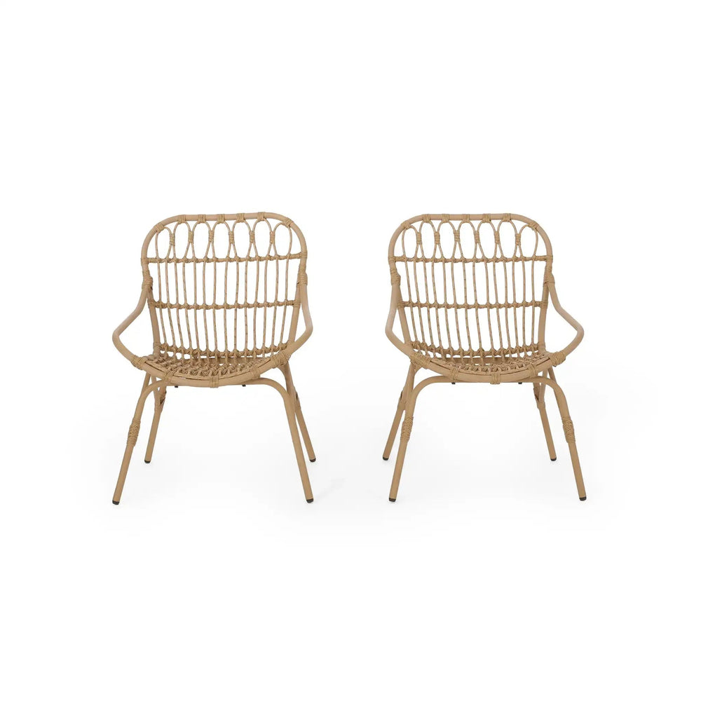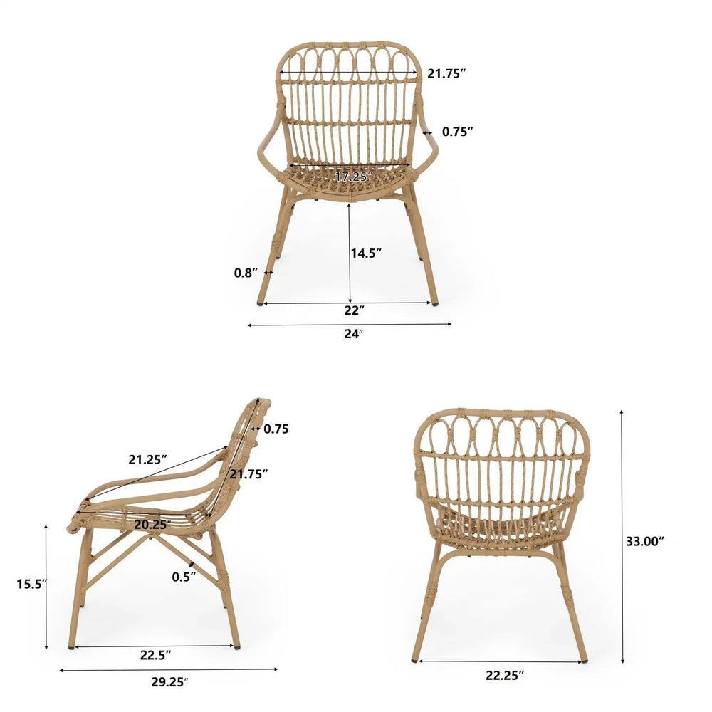 - Durable Construction: Crafted from resilient faux rattan and robust iron materials, these chairs are engineered to endure outdoor elements, ensuring years of reliable use and maintaining their allure season after season.