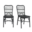 This set of two outdoor wicker patio dining chairs features a durable iron frame paired with hand-woven rattan. Designed for outdoor use, they fit perfectly on patios or garden dining areas, combining function and style.