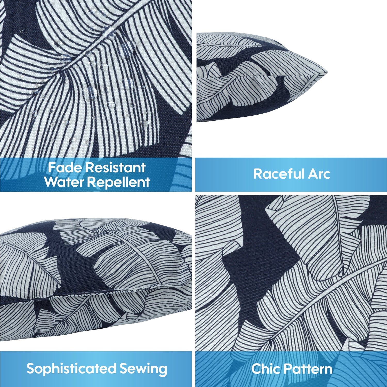 2 Pack Outdoor Throw Pillows, Waterproof & Fade-Resistant (18x18 Inch, Blue Leaf)