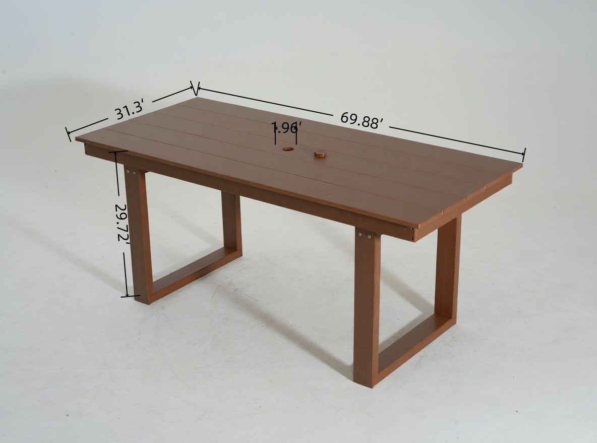 7-Piece HDPE Outdoor Dining Set for 6 – Weather-Resistant Patio Table with Umbrella Hole and 6 Armrest Chairs (Brown)