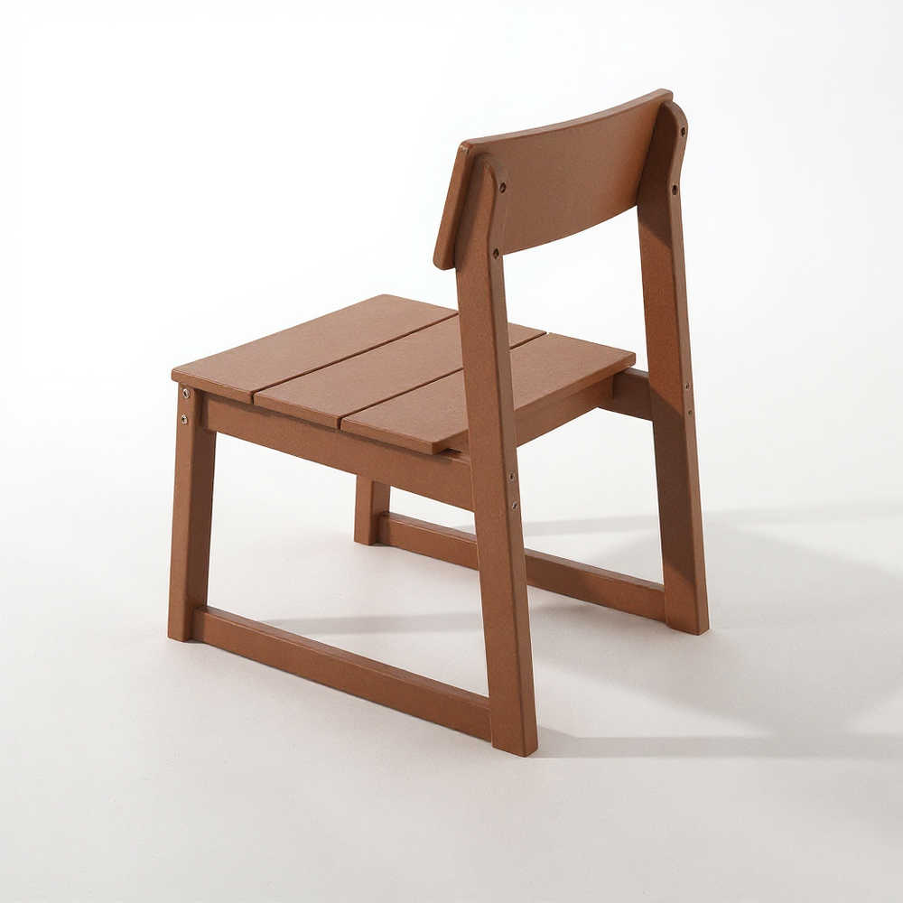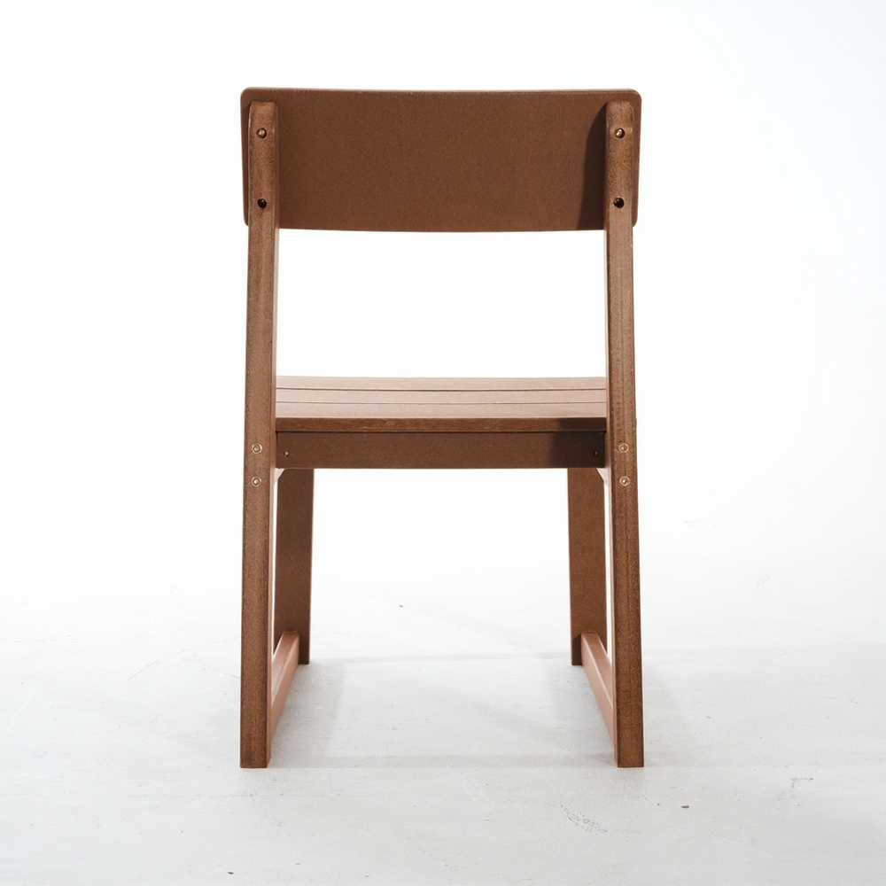 - Six armless chairs with contoured seats and backrests provide ergonomic support and space efficiency