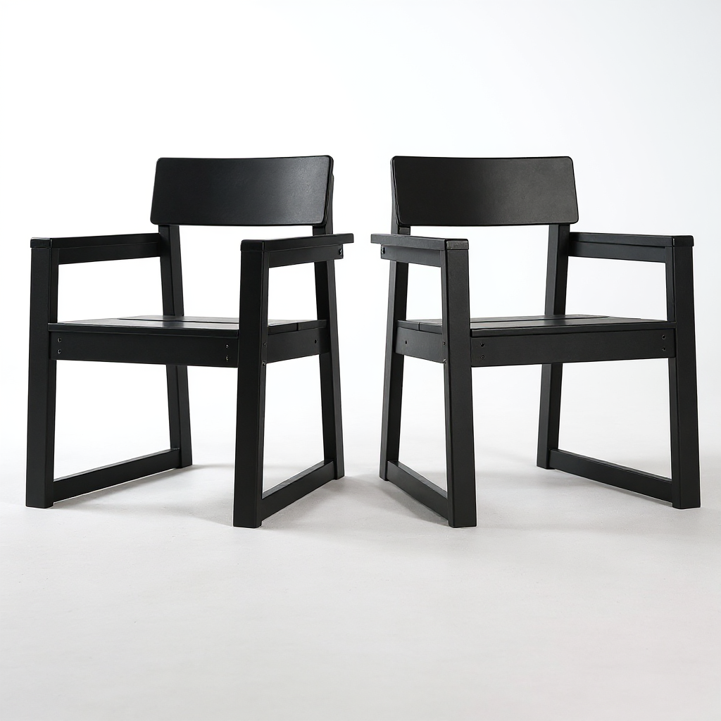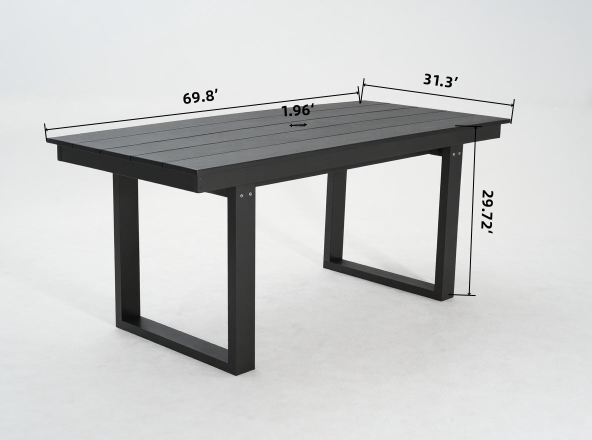 7-Piece HDPE Outdoor Dining Set for 6 – Weather-Resistant Patio Table with Umbrella Hole and 6 Armrest Chairs (Black)