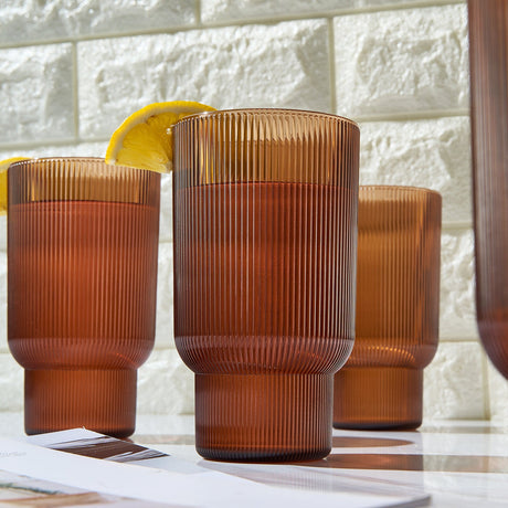 Eze Acrylic Ribbed Highball Glassware, Set of 4