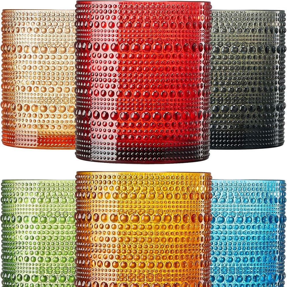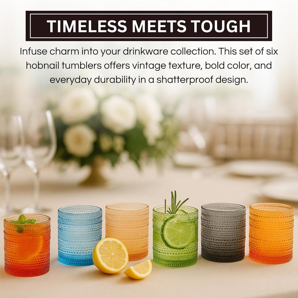 Acrylic Hobnail Lowball Glasses – Set of 6 Colorful & Black Tumblers, 10 oz