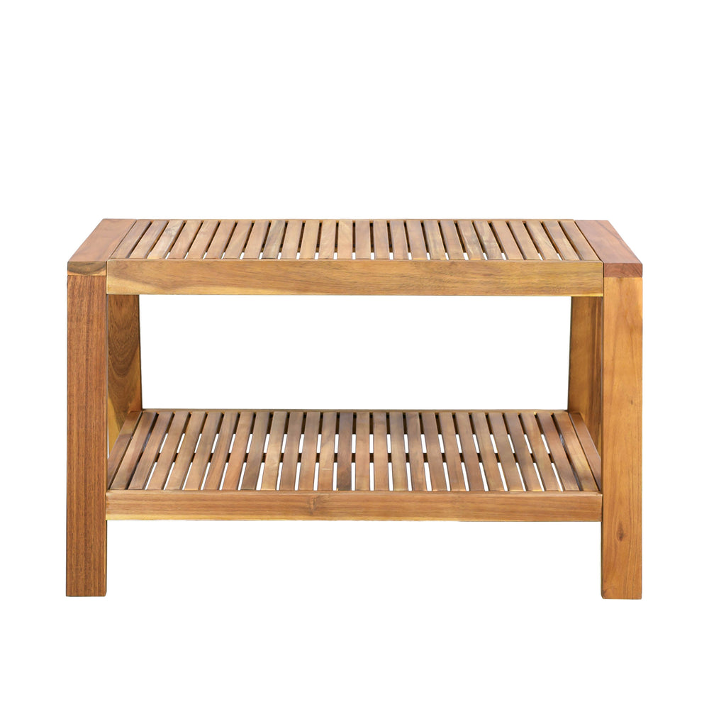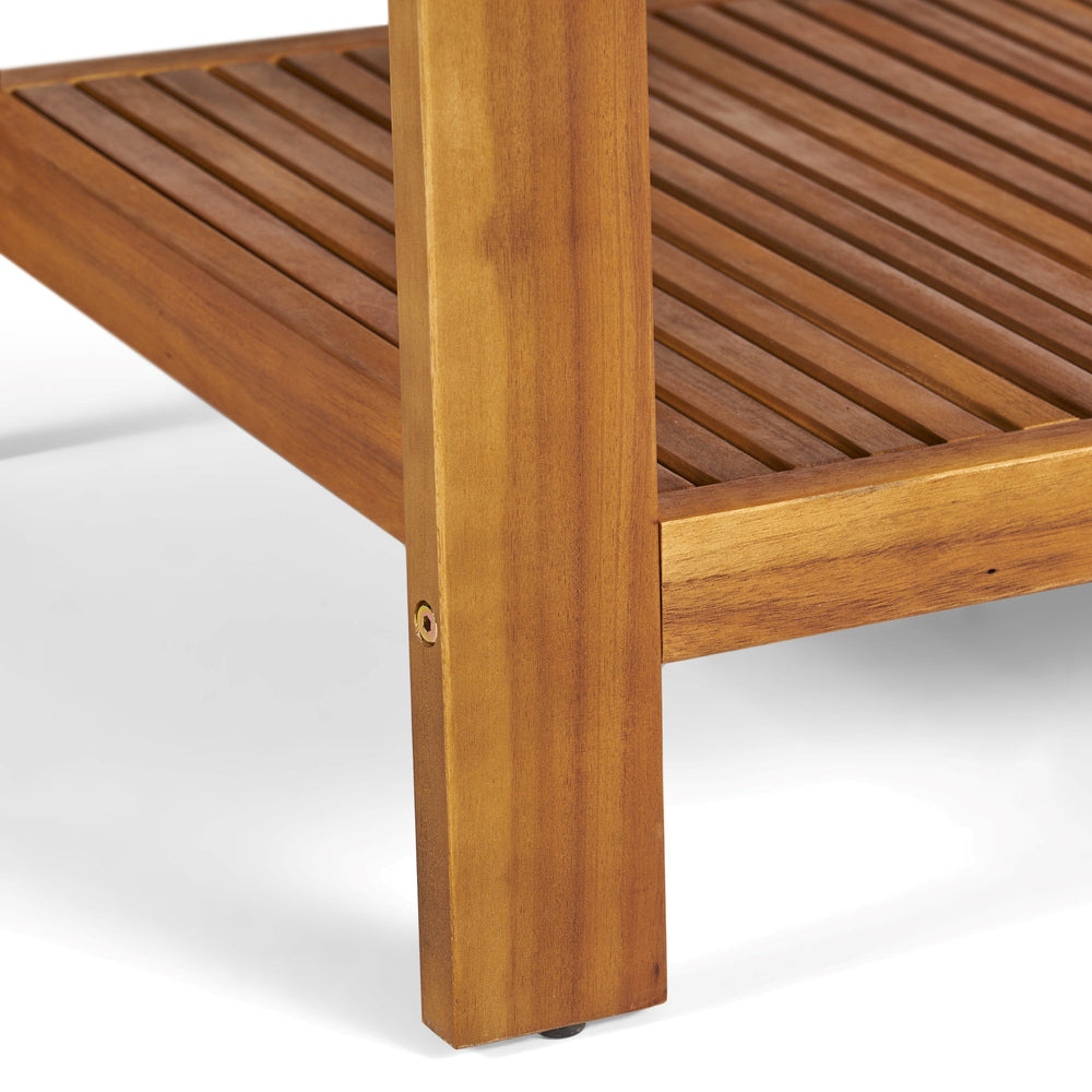 - Modern minimalist design with natural acacia finish complements various outdoor décors