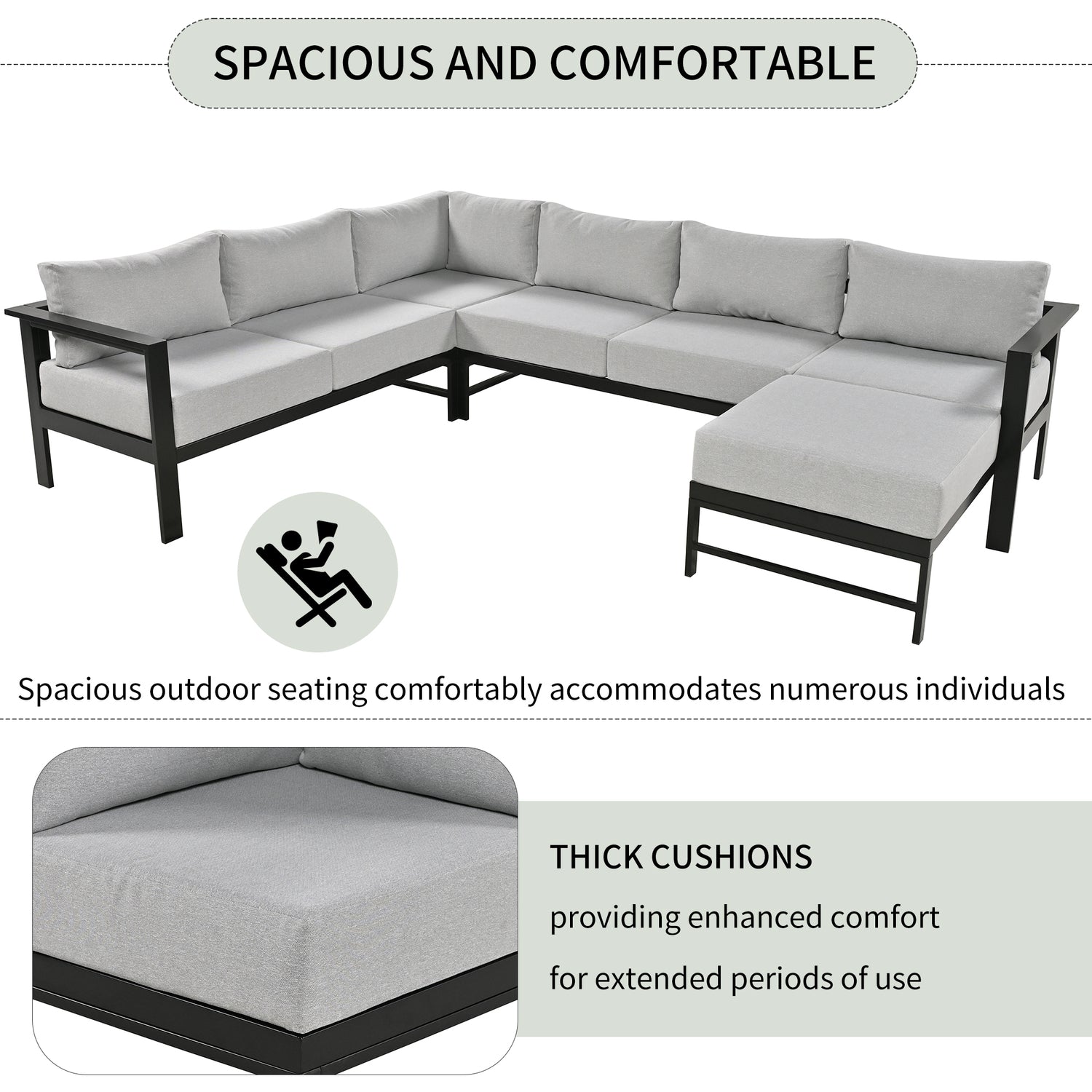 • Cushions: Thick, high-density foam with durable polyspun covers