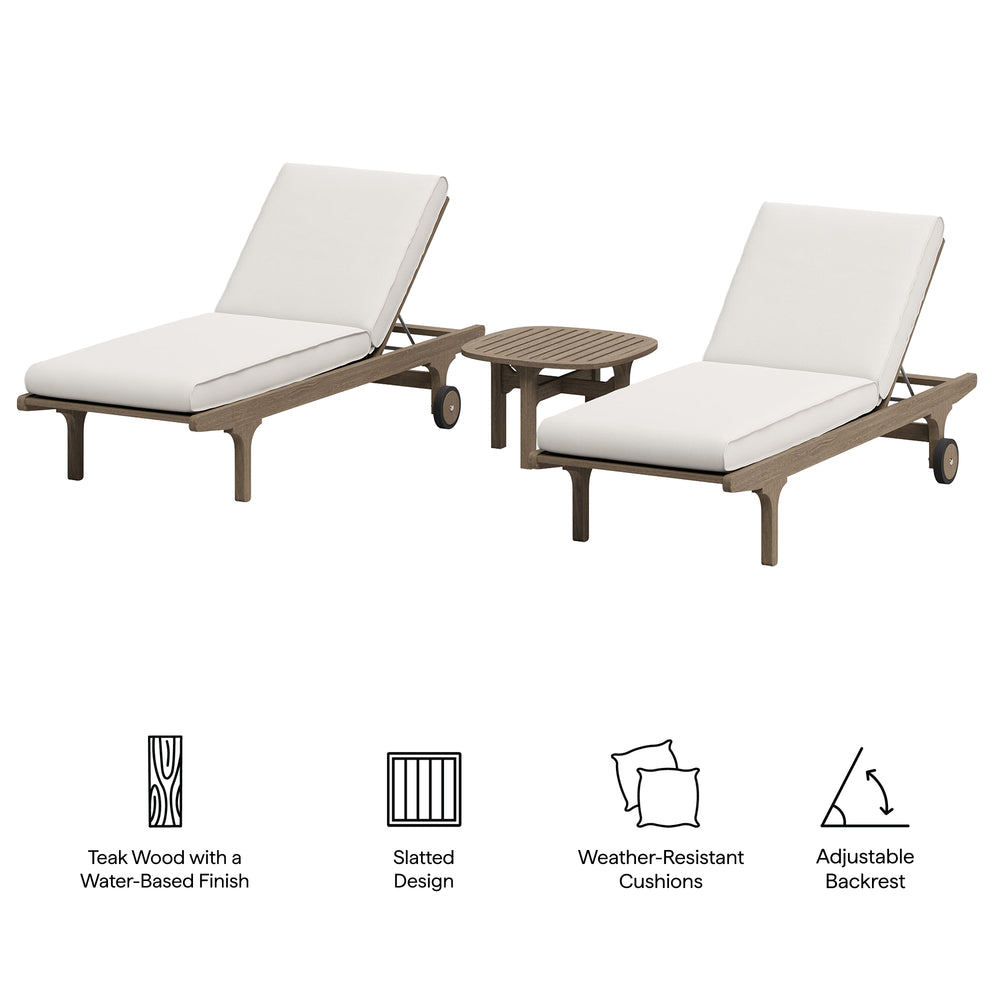 Saratoga Outdoor Patio Teak Wood 3-Piece Chaise Lounge Furniture Set by Modway