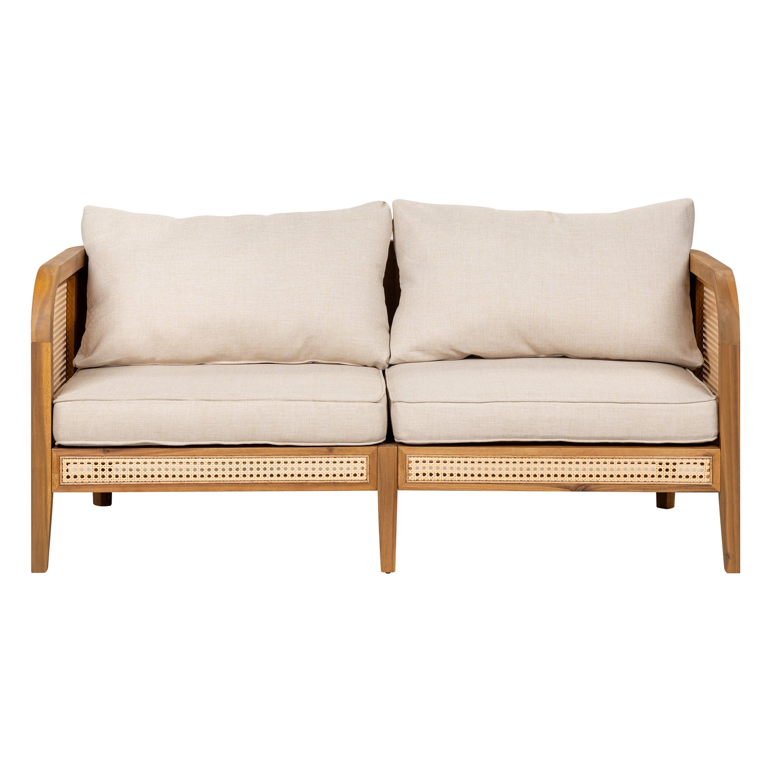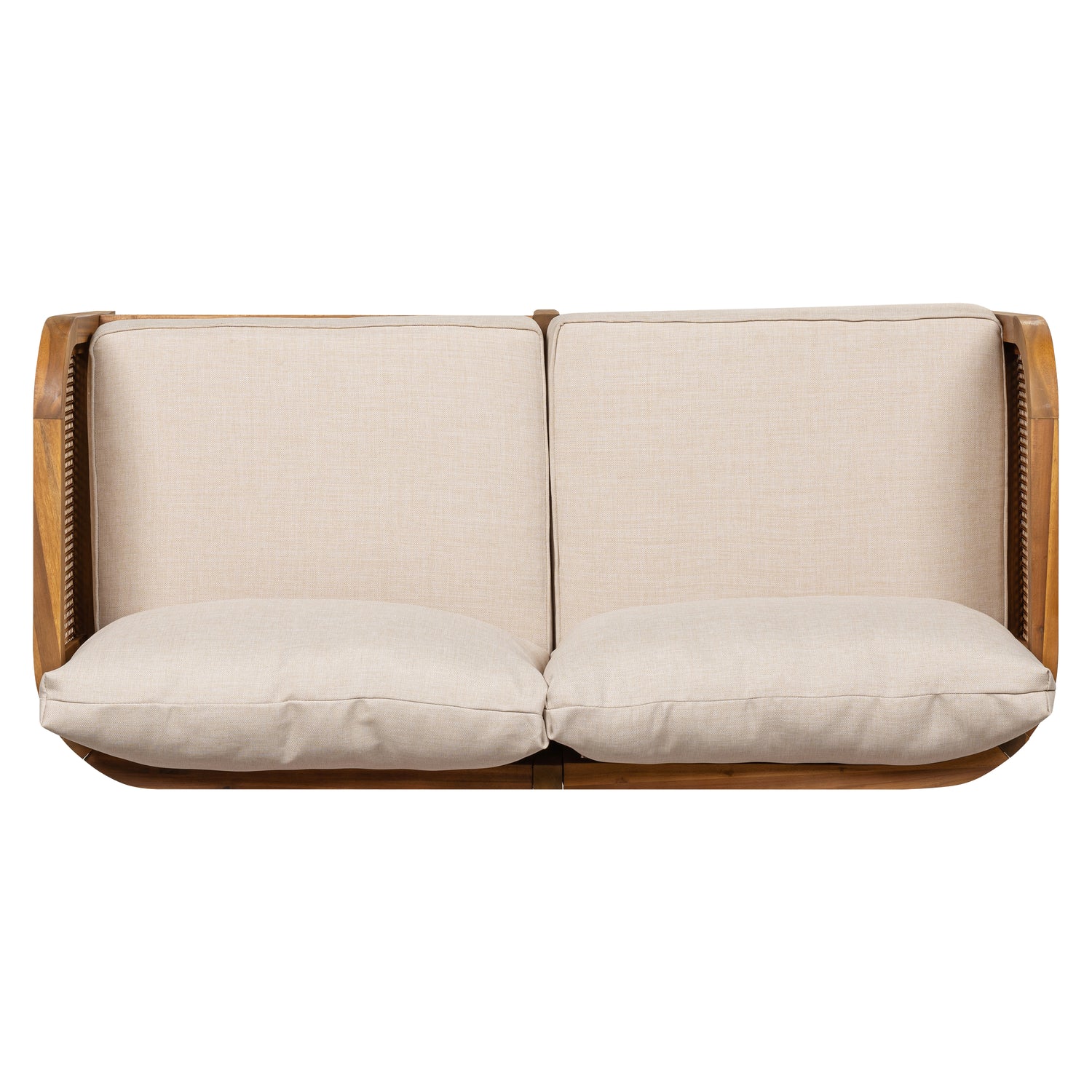 Kirkby Bohemian Outdoor Patio Cushioned Sofa Weatherproof Acacia Wood Teak Beige 56.25in