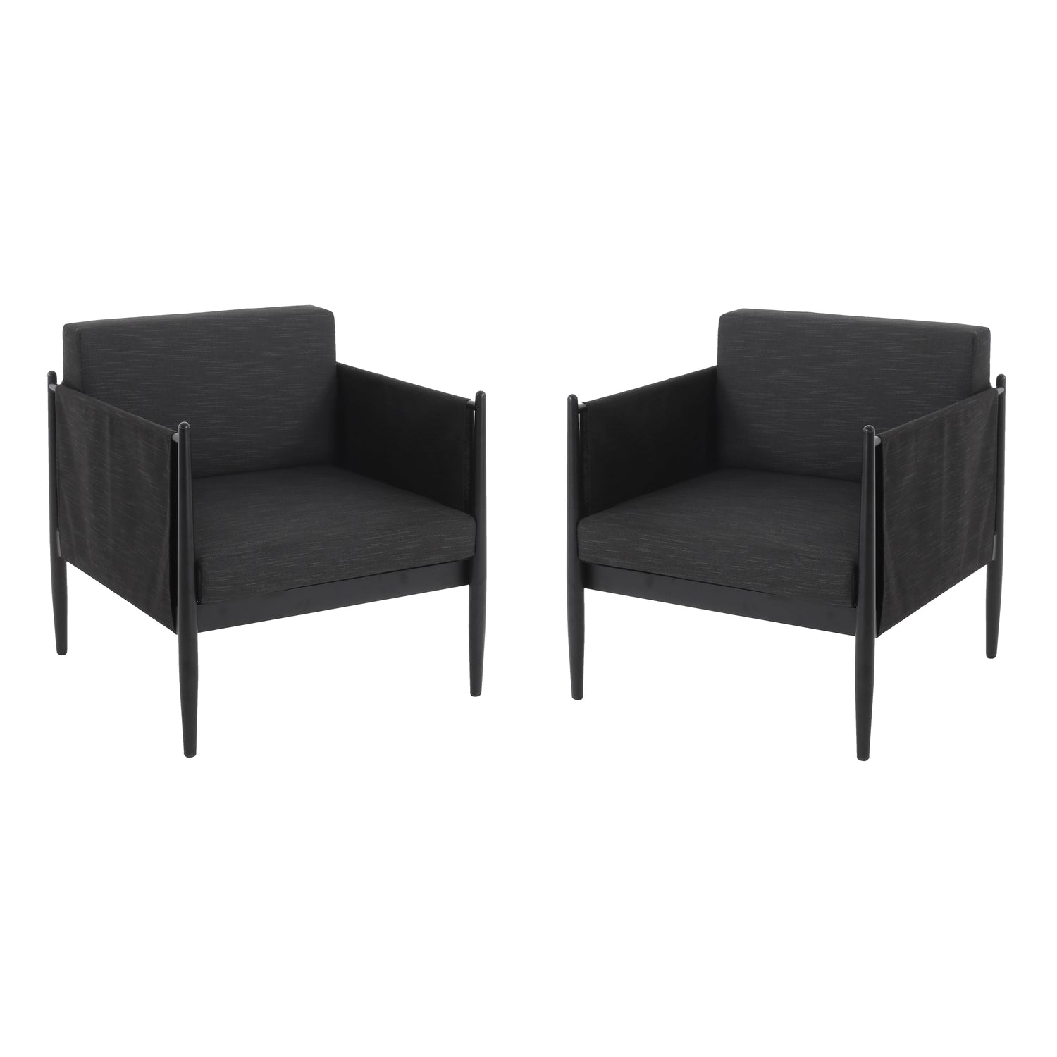 Dawson Outdoor Patio 2pcs Black Aluminum Club Chair Set with Water-Resistant Cushions