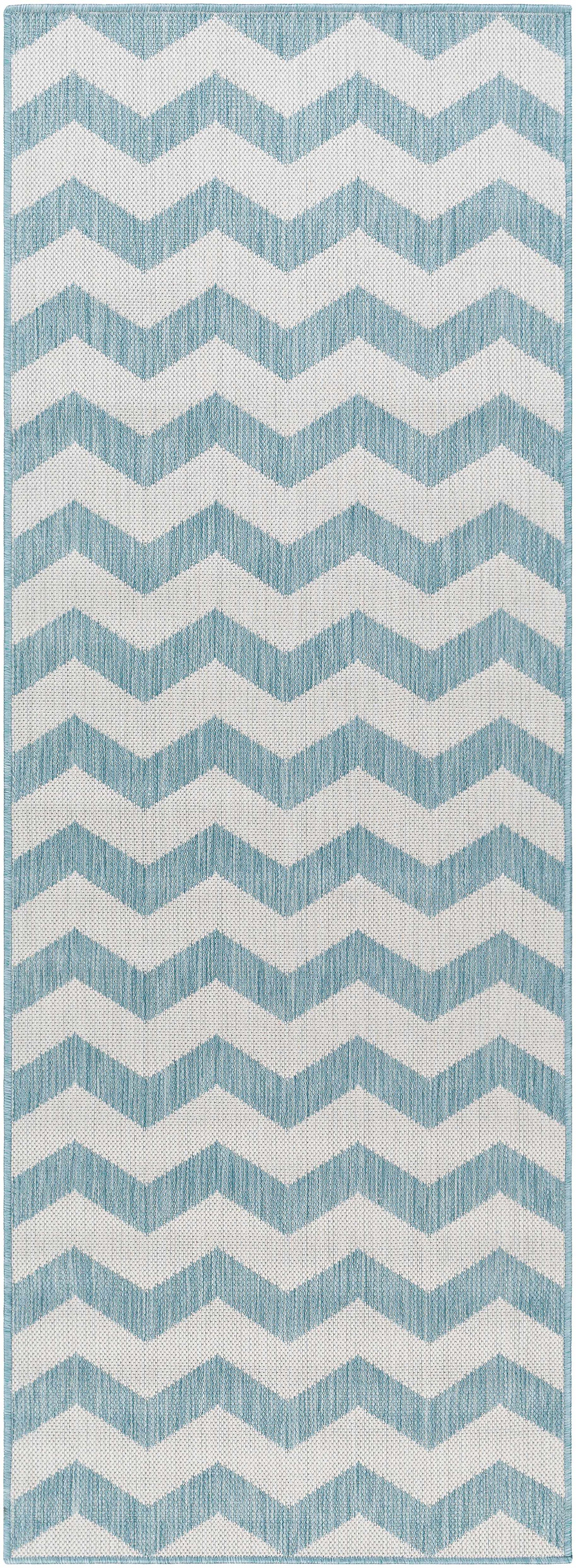 About: Add a modern touch to your home with this blue chevron area rug. Its no-pile design ensures easy upkeep, ideal for active spaces. The rug's blue zigzag pattern offers a stylish accent, perfect for contemporary and traditional decor. Durable and practical, it's a must-have for any room.