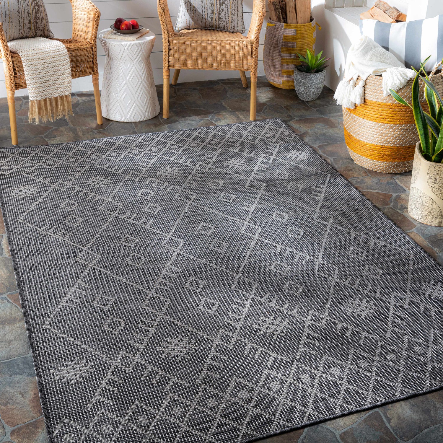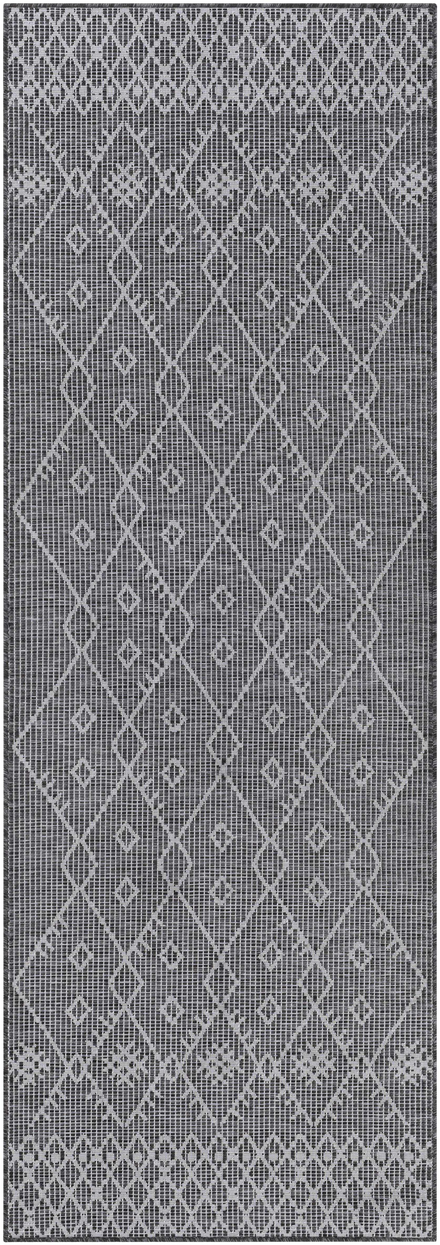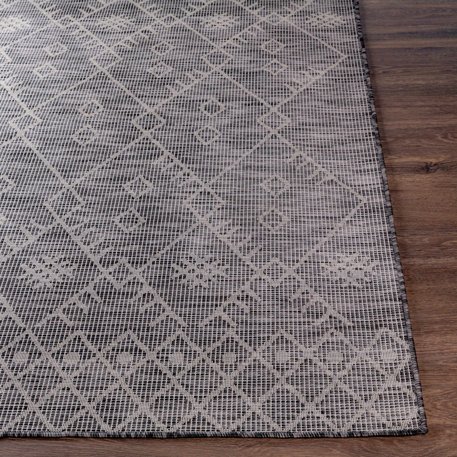 Lorena Charcoal Flatweave Trellis Carpet - Clearance
