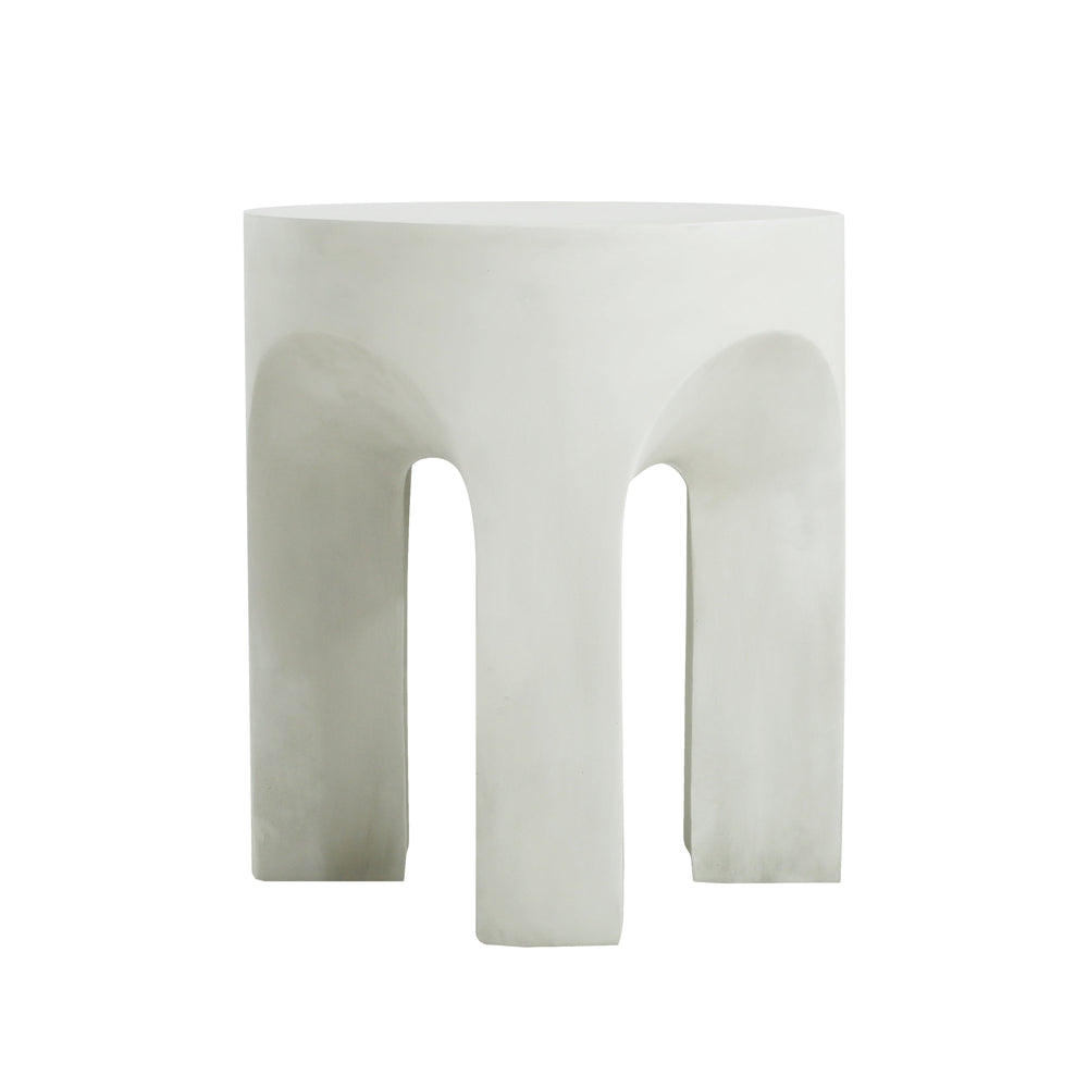 This minimalist outdoor side table features a round top design, perfect for patios, gardens, or indoor living spaces. It offers a blend of style and functionality with its durable lightweight concrete construction and clean antique white finish.