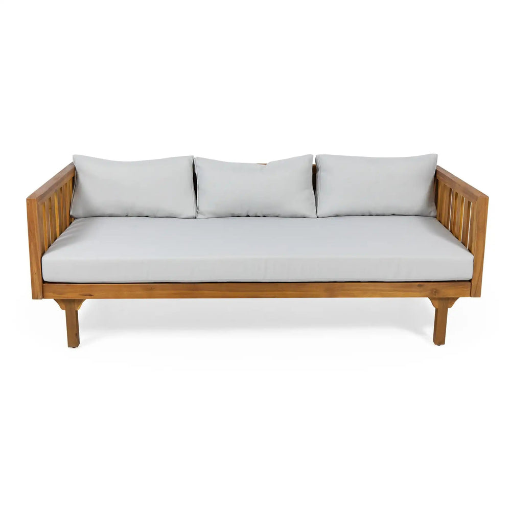 The Claremont 3 Seater Daybed is designed for outdoor living spaces such as patios and garden lounges, combining functional comfort with stylish appeal.