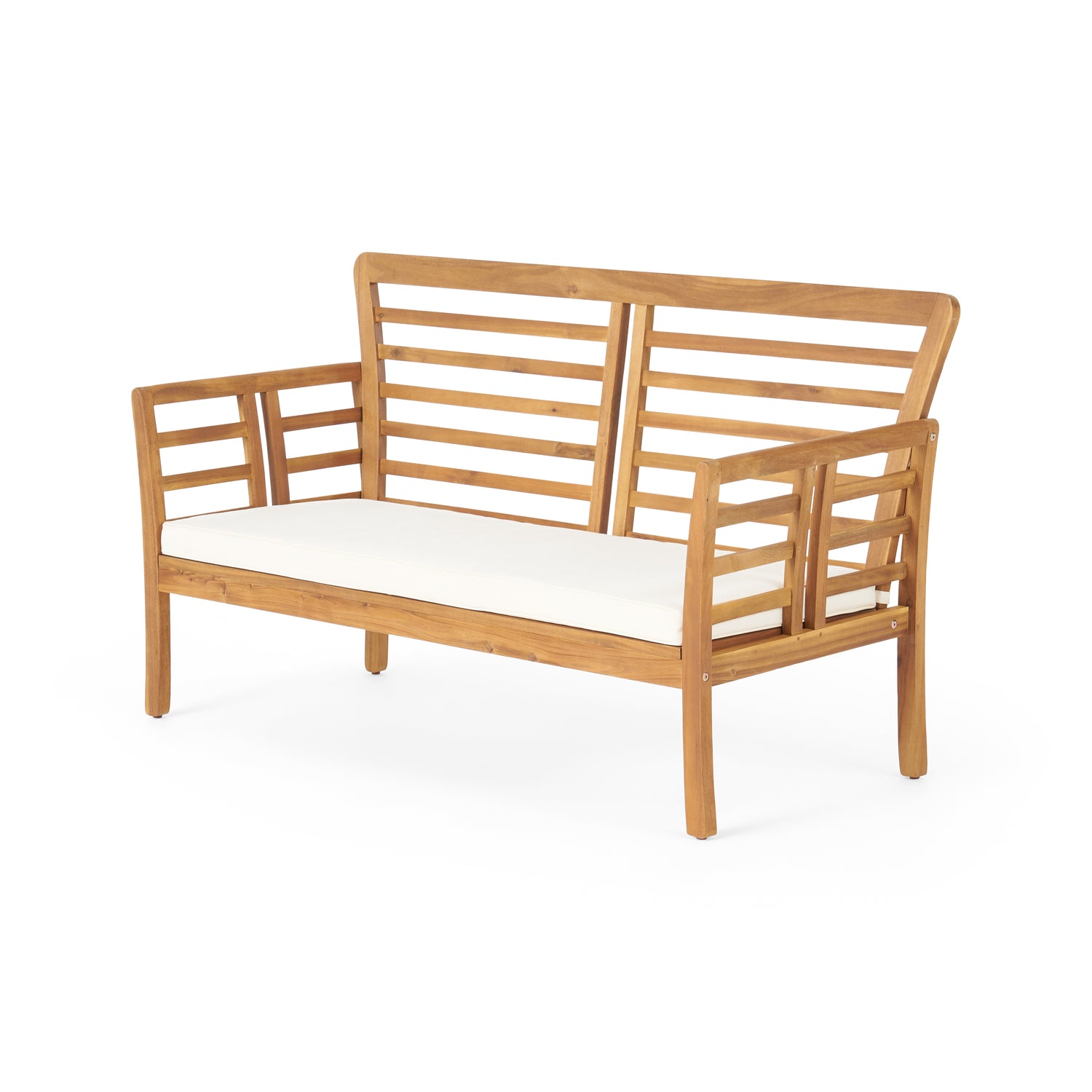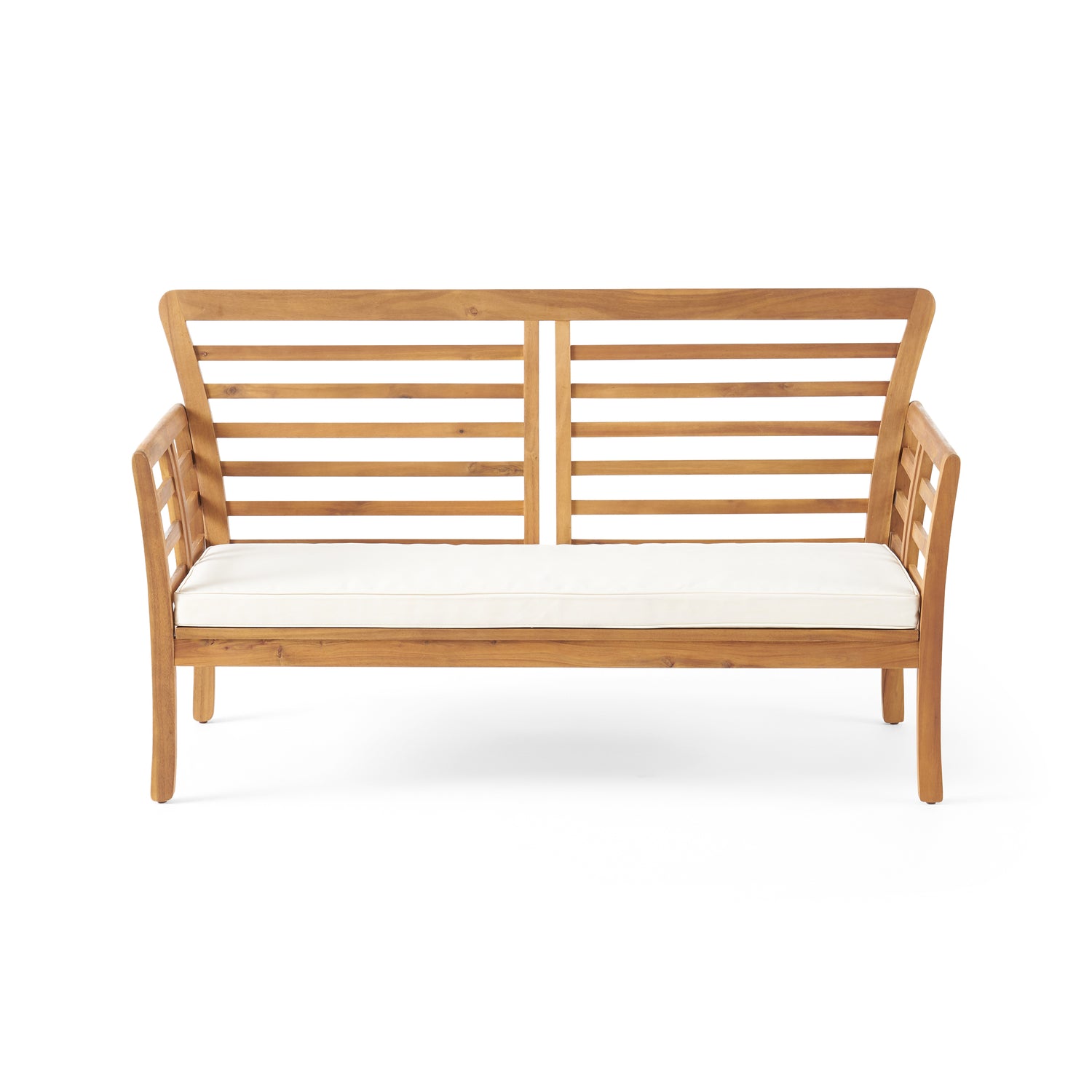 Crafted from sturdy acacia wood, our loveseat is built to withstand the elements and resist wear and tear. The slat panel design adds a touch of elegance to this classic piece, making it a standout in any outdoor space. Tested to withstand mild weather conditions, this loveseat is perfect for year-round use. Assembly is required, but don't worry - we've made it easy for you. All instructions and tools are included for your convenience, so you can have your new loveseat set up and ready to enjoy in no time. Upgrade your outdoor space with our elegant and functional acacia wood loveseat and create a cozy and inviting atmosphere for all your outdoor gatherings.