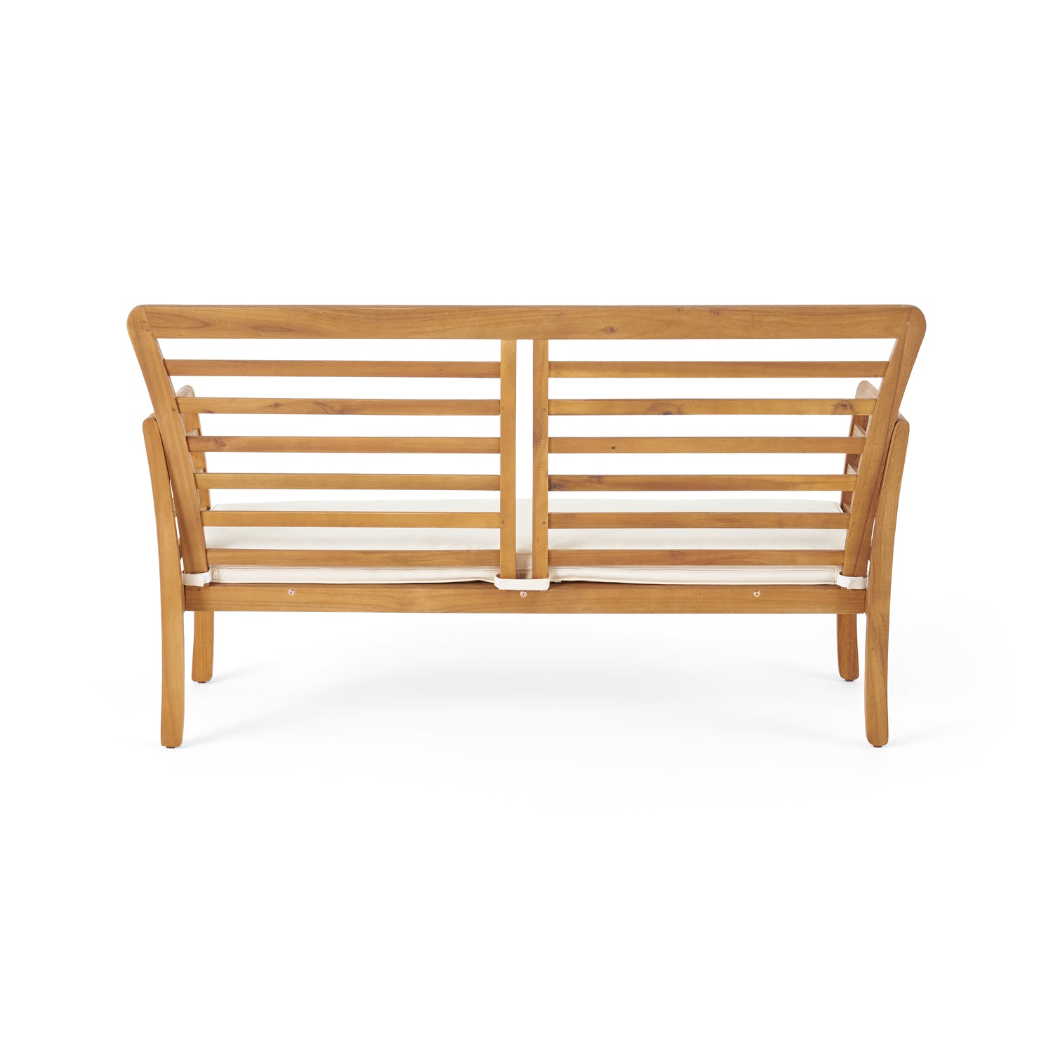 Whether you're hosting a small gathering or simply unwinding after a long day, our loveseat comfortably seats two people and provides the perfect spot to relax and unwind. Featuring a sleek and modern design, our loveseat boasts clean lines and a curved frame that adds a touch of sophistication to any outdoor setting. The open-slat wooden frames and double pane design give this piece a timeless appeal that will elevate the look of your backyard. And with its water-resistant cushions, you can enjoy the comfort of our loveseat without worrying about wear and tear.