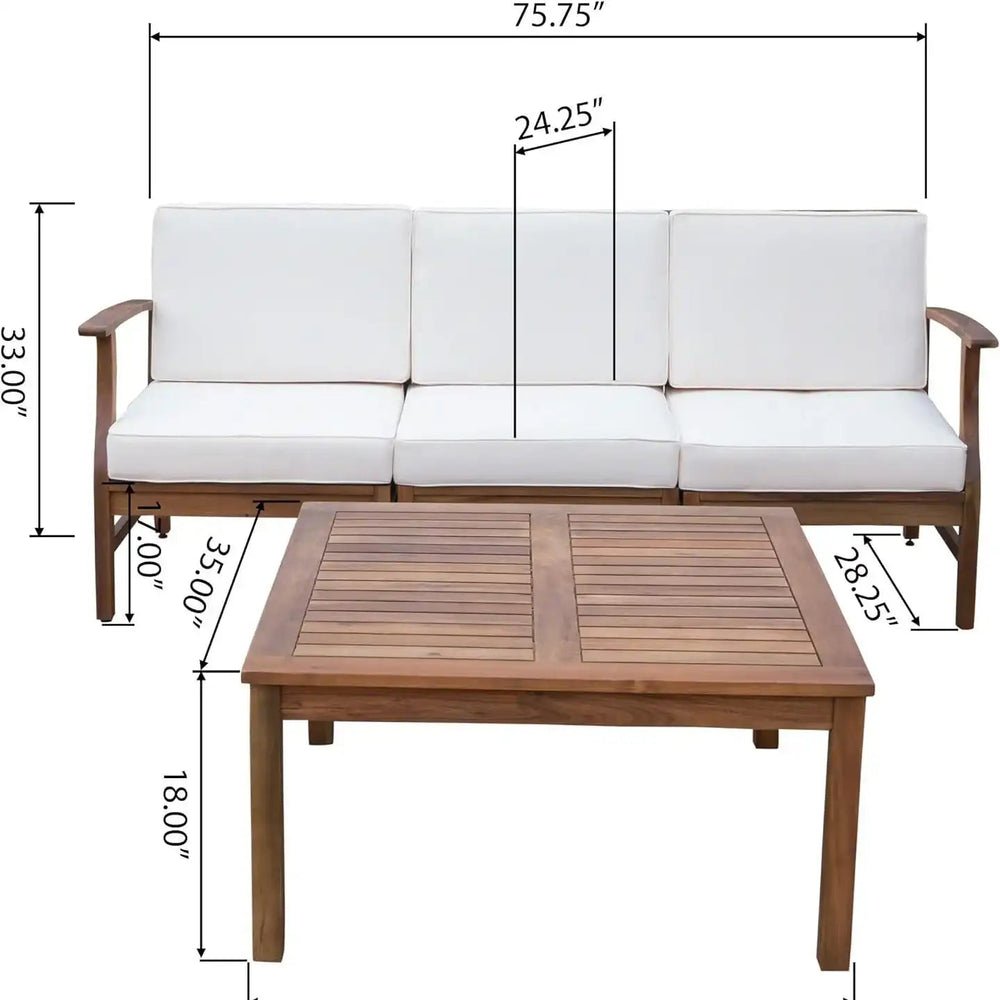 The Perla 3 Seater Sofa And Table Set is a compact outdoor furniture set ideal for patios and backyards. It offers functional seating combined with a coffee table, adding a stylish and natural touch to your outdoor living area.