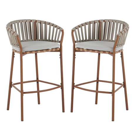 Lodi Outdoor Metal Rope Barstool Set of 2