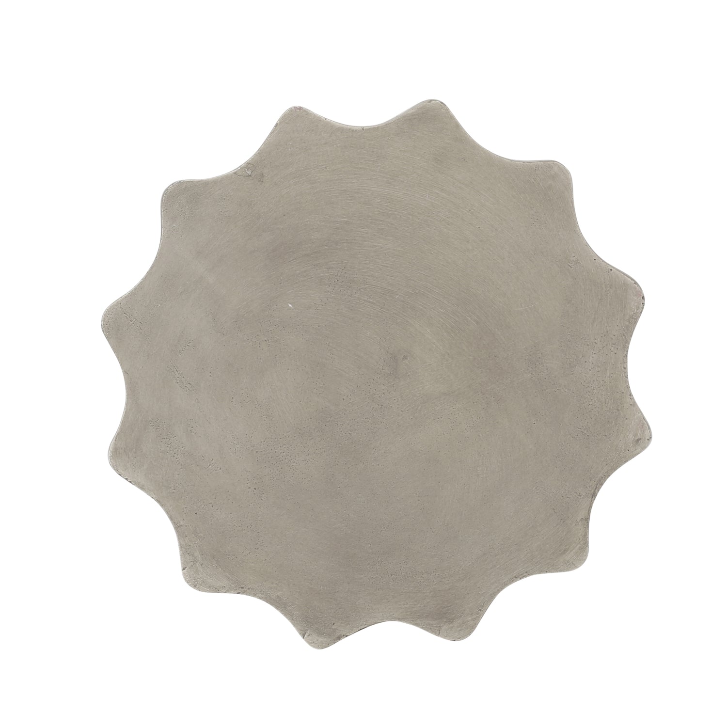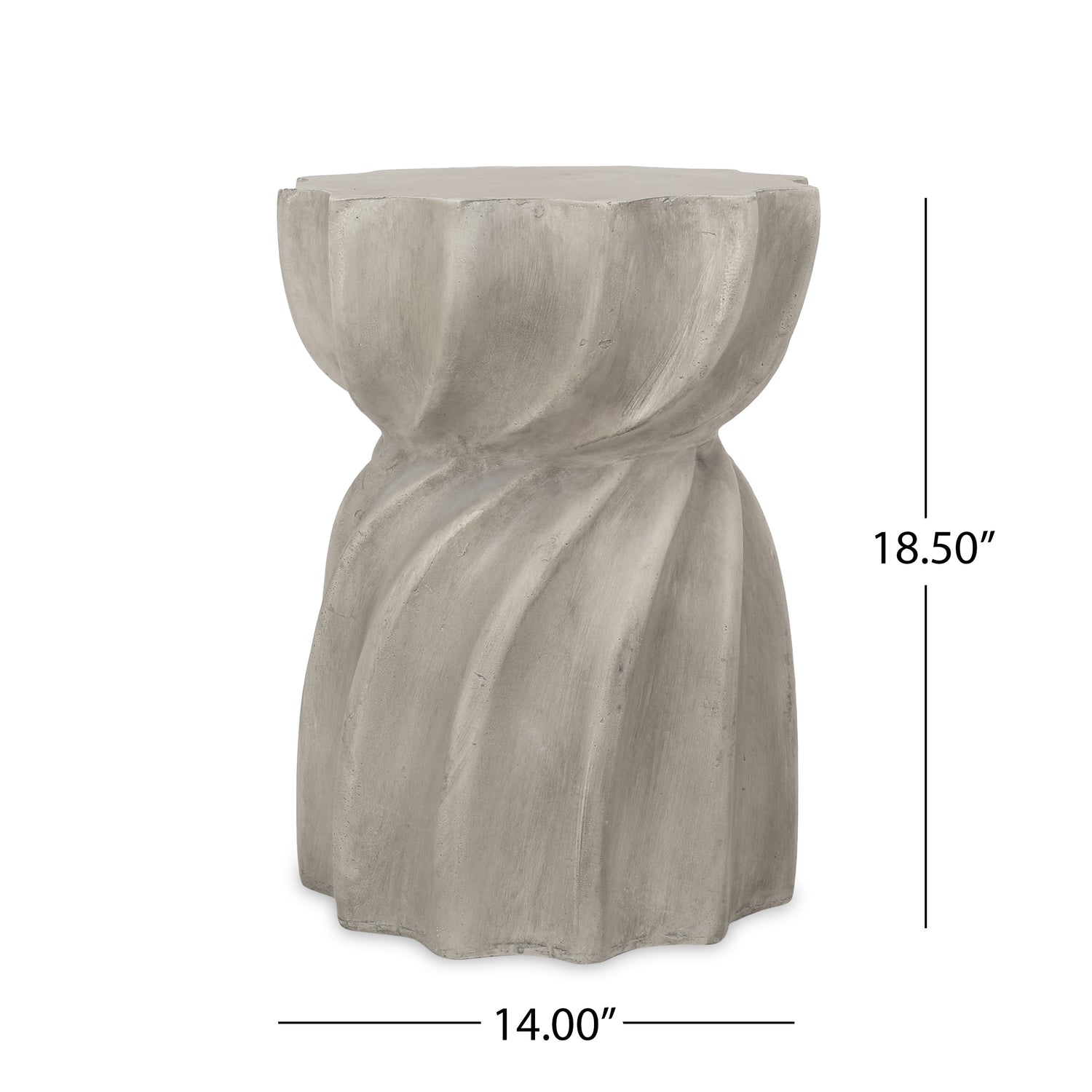 Introducing our must-have side table for your outdoor oasis. Elevate your space with our sleek and stylish design, crafted with lightweight concrete for both durability and a modern aesthetic. Its versatile design makes it the perfect addition to any backyard or patio, whether as an end table next to your chat set or sectional. The sunburst tabletop and hourglass shape add a touch of sophistication to any space, making it a statement piece that will elevate your outdoor decor. Use it to hold snacks or chilled drinks while entertaining guests, or simply as a decorative piece to tie your outdoor space together. Don't settle for a basic outdoor table - upgrade to our refined and functional side table today.