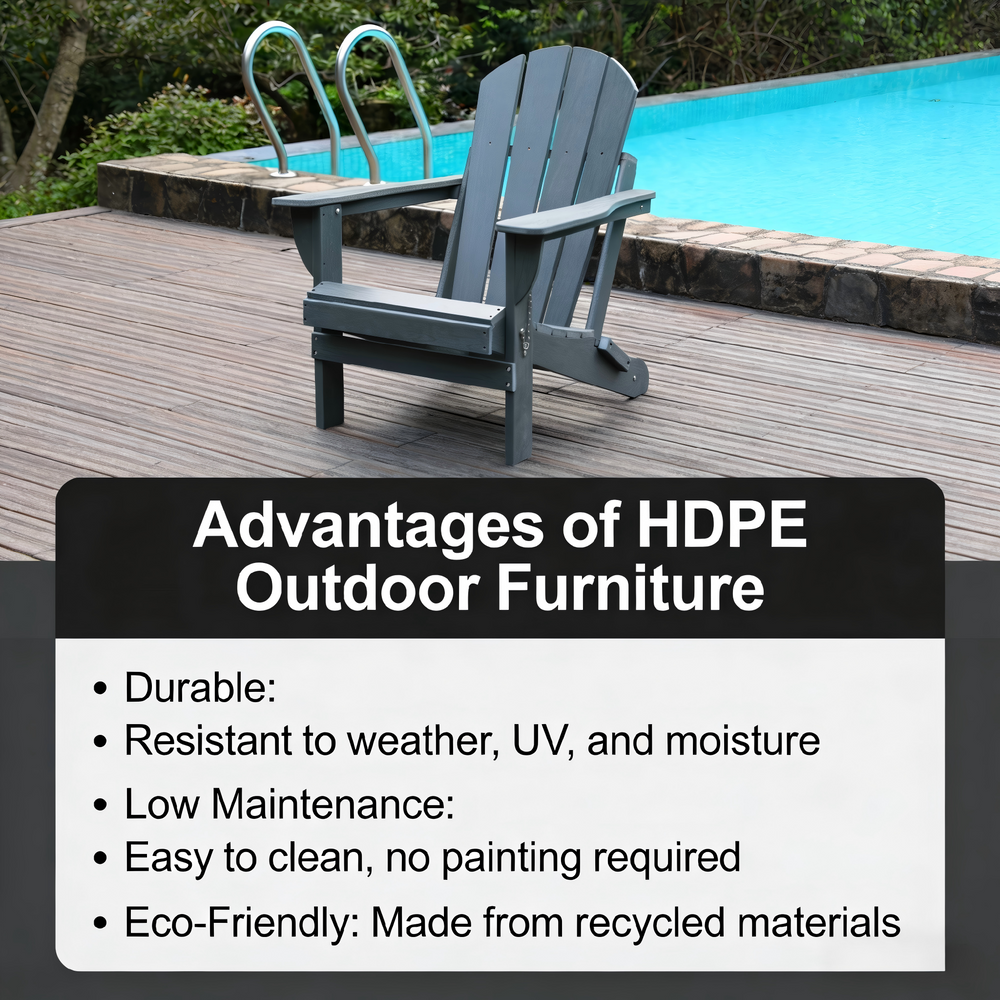 This Adirondack folding chair features a wood-like grey finish, offering comfortable and stylish seating for outdoor spaces including backyards, gardens, camping sites, poolside areas, or fire pits.