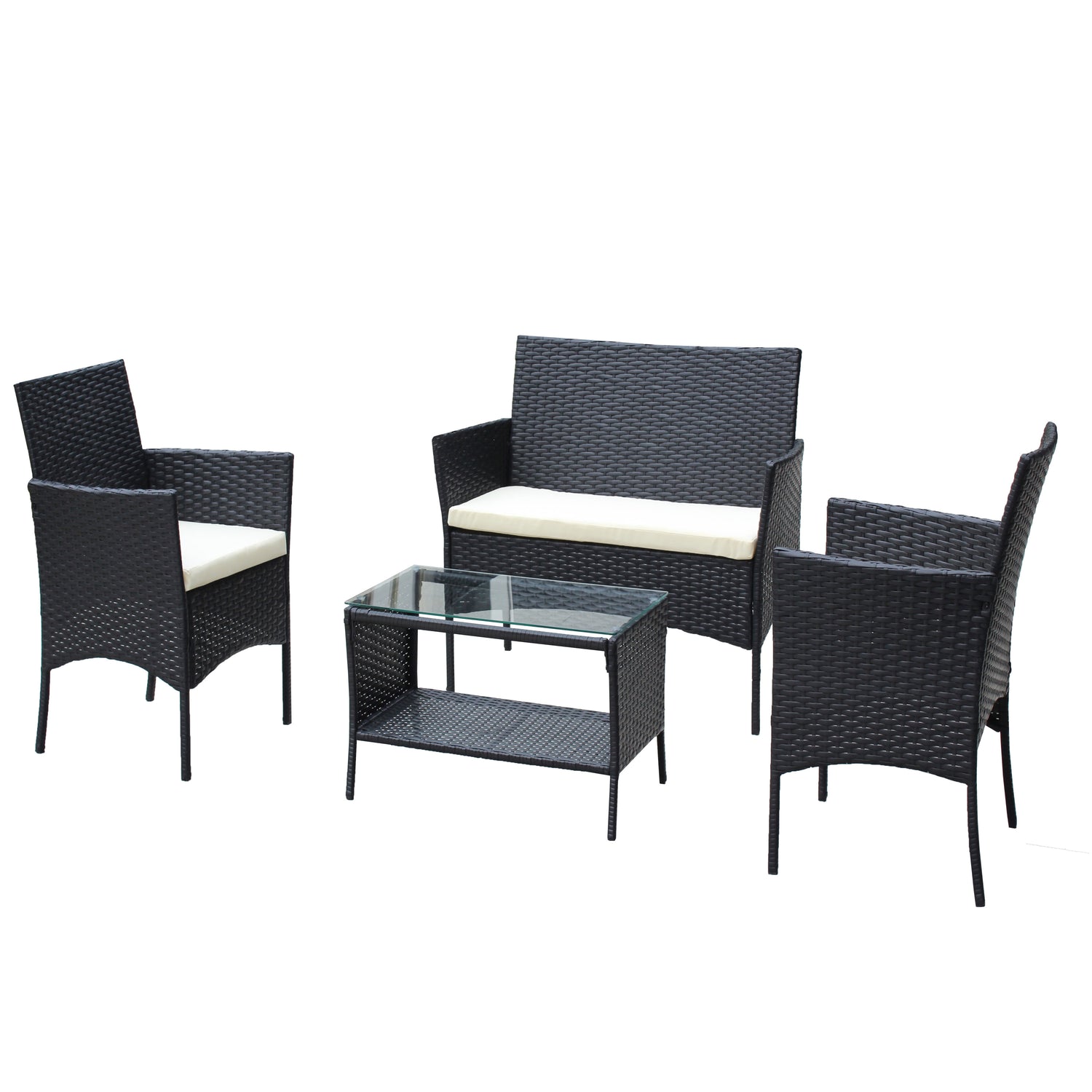 4 PC Rattan Patio Furniture Set Outdoor Cushioned Wicker Sofa