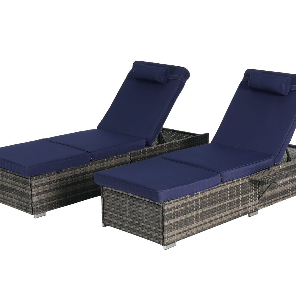 This set of two outdoor chaise lounge chairs is designed for patio, poolside, or garden use, offering a blend of functional comfort and stylish American design. Constructed for outdoor living spaces, these loungers provide a relaxing seating option with a sleek silhouette.