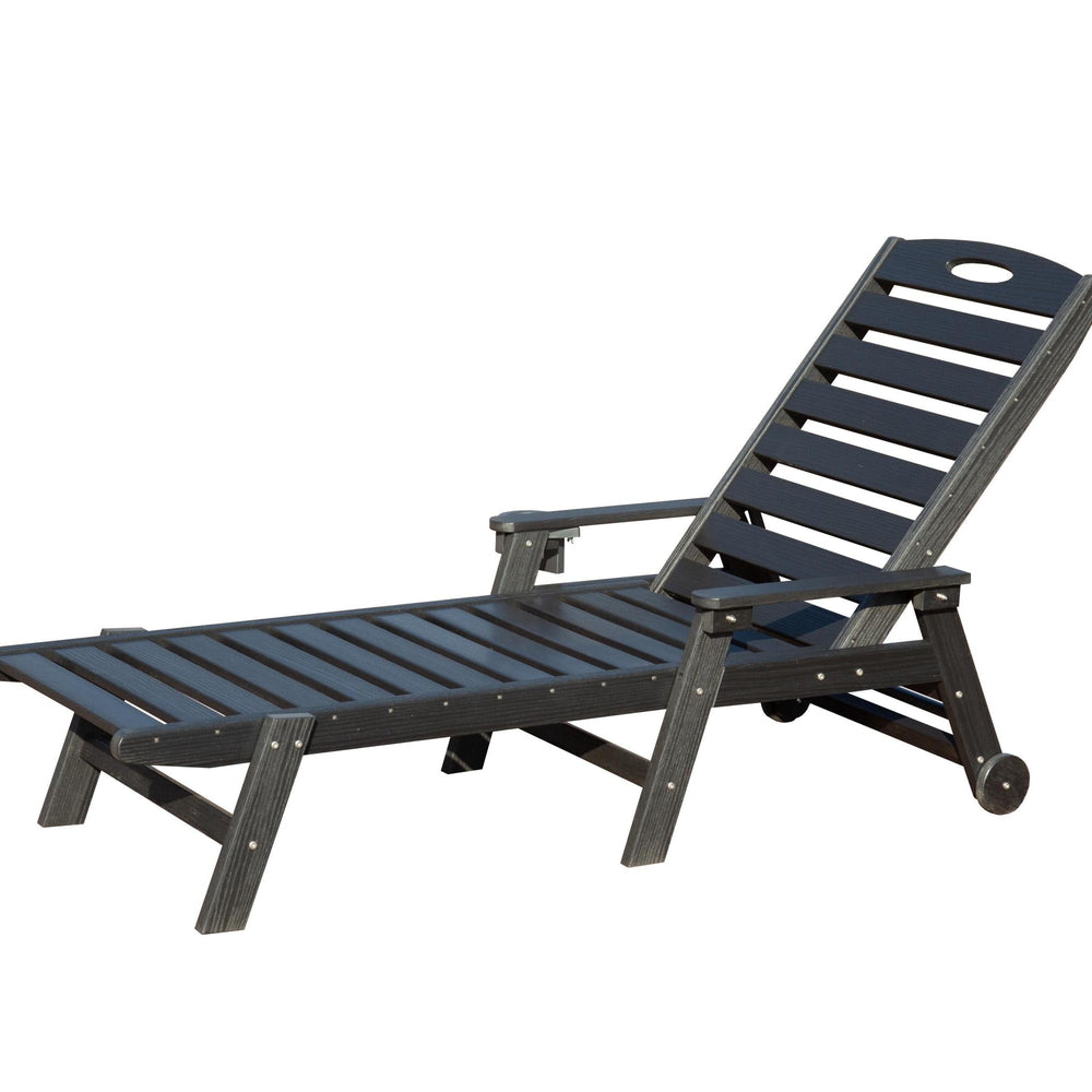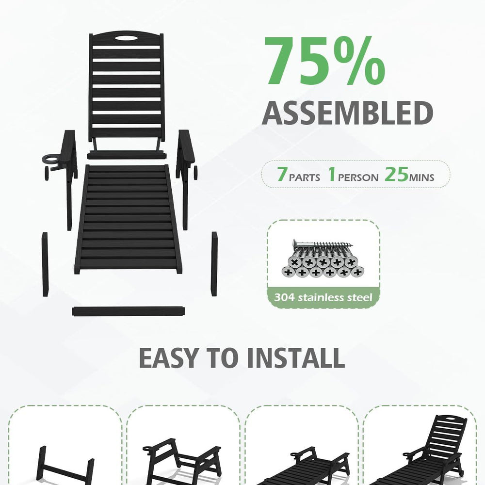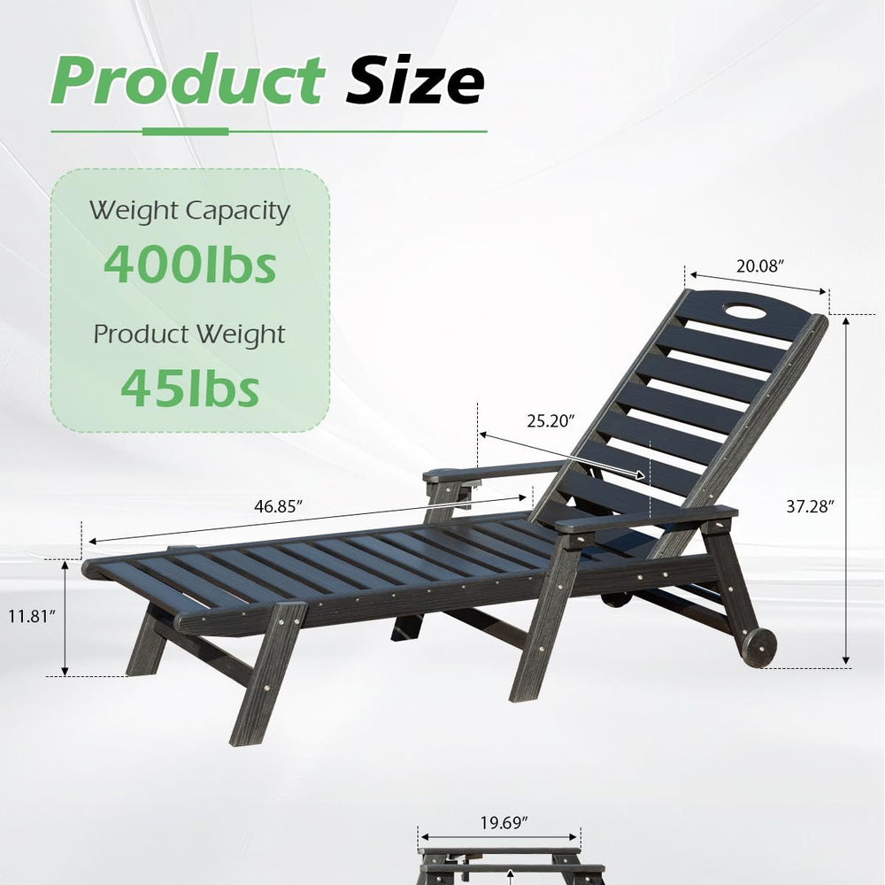 Patio Lounge Chair Outdoor, HDPE Outdoor Chaise Lounge with Reclining Backrest, Pool Lounger Chair for Outside, Poolside, Sunbathing Tanning, Black