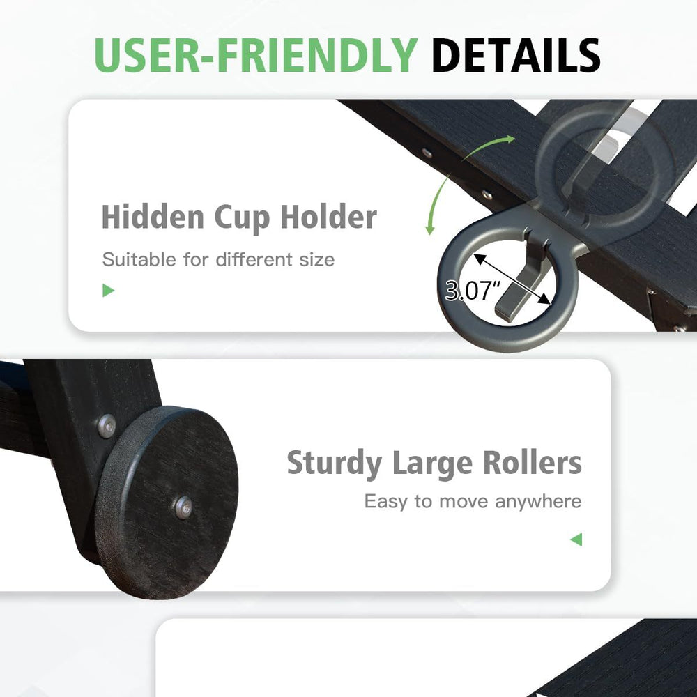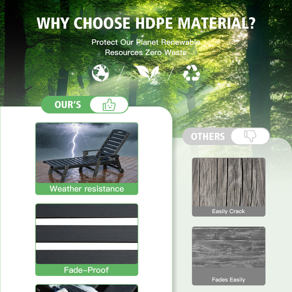 - Upgraded Flexible HDPE Material with Exclusive Technology: Crafted from recyclable HDPE material upgraded by proprietary technology, this chaise lounge outdoor boasts enhanced flexibility. Outdoor Lounger not only improves comfort and load-bearing capacity but also prevents cracking when screws are installed, ensuring long-term durability and reliable use.