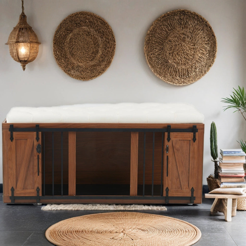 This 2 in 1 dog crate bench offers a secure and comfortable space for small to medium dogs while serving as a stylish bench for your living area. Its elegant walnut finish and functional design make it suitable for use in living rooms or entryways.